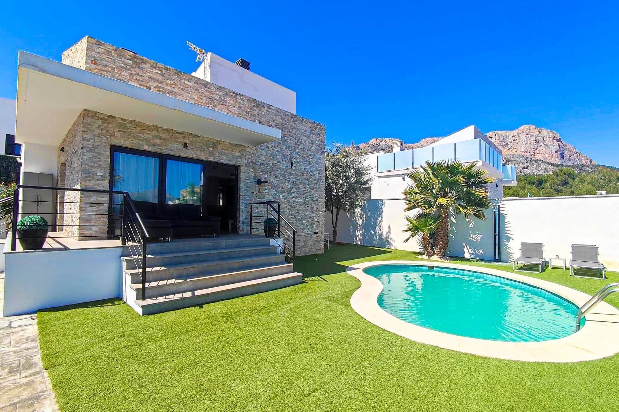 Situated in a tranquil, pine forested area, facing the Aitana Mountain range with stunning views from 4 terraces. La Nucia near Guadalest Valley. Lovely heated private pool for relaxing and keeping cool in the long hot sunny summer days. Only a short 10 mins drive to fabulous beaches of Altea , Albir, Finistrat and Benidorm.