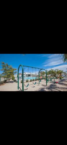 1.5 miles from Conchalito Beach in La Paz, GoBaja Villas 2 bedroom features accommodations with access to wellness packages, fitness room, and public bath. Providing a garden, the property is located within 1.5 miles of La Posada Beach. The accommodation offers a spa facilities, free Wifi throughout the property, and a shared kitchen. Leading onto a patio with garden views, the spacious air-conditioned vacation home consists of 2 bedrooms. Offering a terrace with pool views, this vacation home also has a flat-screen TV, a well-equipped kitchen with an oven, a microwave, and a toaster, as well as 2 bathrooms with a shower and free toiletries. The property has an outdoor dining area. Sightseeing tours are available around the property. In addition to a year-round outdoor pool, the vacation home also provides outdoor play equipment and shared lounge. The nearest airport is Manuel Márquez de León International Airport, 3.1 miles from GoBaja Villas 2 bedroom.