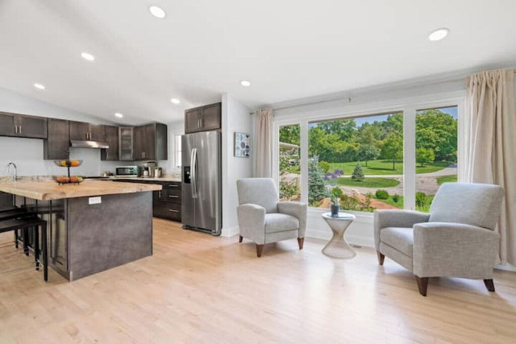 Tucked away in this sought-after neighborhood in Lake Geneva, Skyline Forest Retreat offers guests a peaceful & enjoyable stay in LG. Skyline offers ample space to entertain inside & out while still remaining close to all that the area has to offer; All this, without sacrificing the privacy and comforts of home. Guests are drawn to the clean & seamless designed space, the quality amenities & the picturesque courtyard, perfect for celebrations with loved ones & ultimate sky dazing.