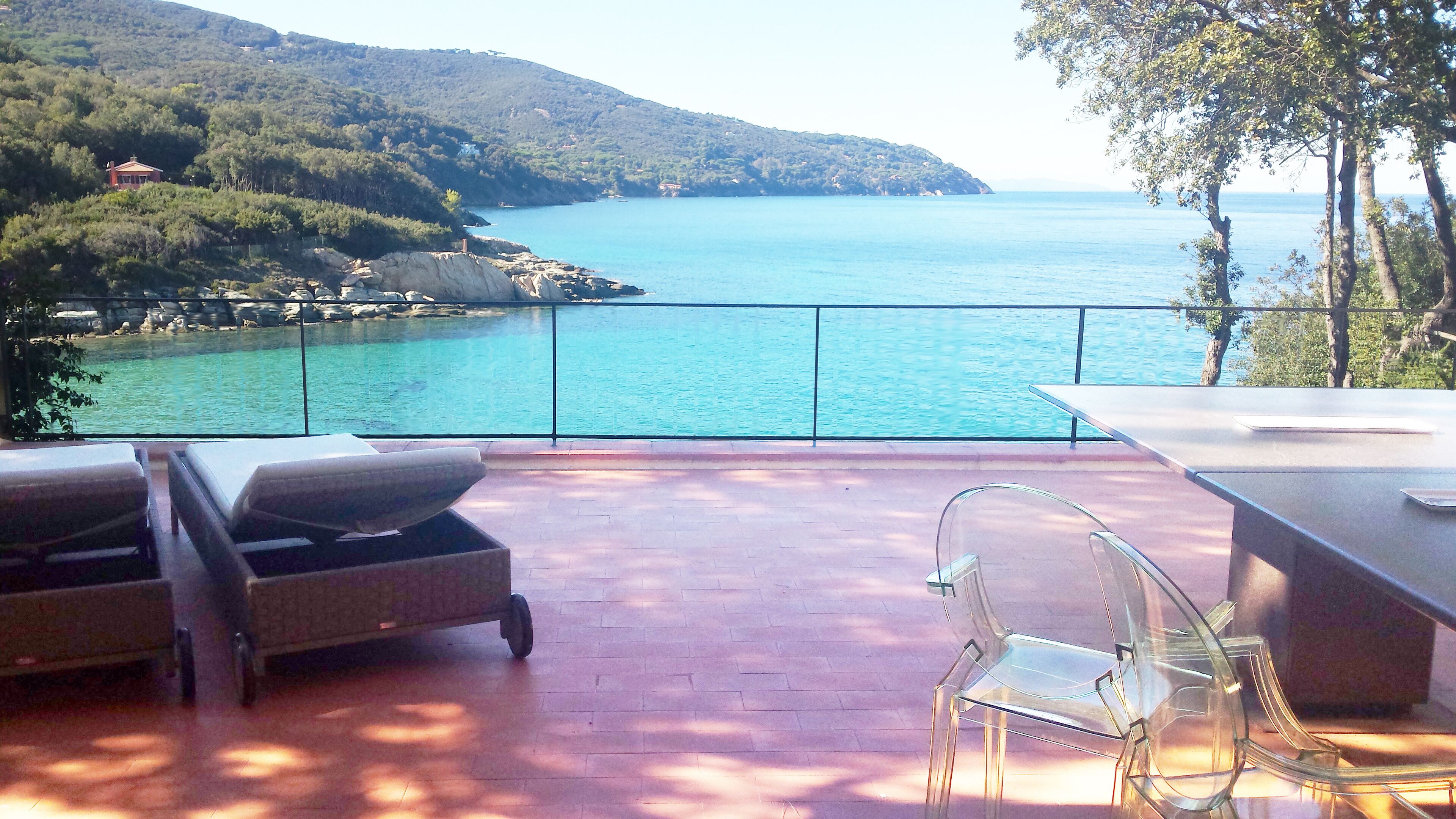 - "The property is really wonderful and unique - not many houses have direct, private sea access in amazing clear water (think Sardegna) and incredible views from some elevation. We really enjoyed being able to hop in the water from our private deck and then walk - as the sea is very shallow - to the beach ~30 meters away (you can also just walk 3 min down the hill directly to the public beach area). We also liked that the town/beach of Procchio is just a 5-10 min walk down the hill in the other direction if you're in need of a bigger, more equipped beach and don't want to drive. There are also some great restaurants/bakeries/etc in town. The house itself was super clean and very well equipped with good internet, great kitchen/bbq and tons of sleeping space. The "dependance" apartment was also great for a couple/small family seeking some added privacy - it has just been redone and is very comfortable. The views really are amazing and the pictures don't do it justice. Finally, Gioia is an excellent host - she was super responsive from booking and throughout our entire stay. We had almost no issues but anything that came up she dealt with immediately. Irina cleans the house and was also available. Stunning views + easy access to swimming + lots of space for large groups + walk to town + great host = this place."
