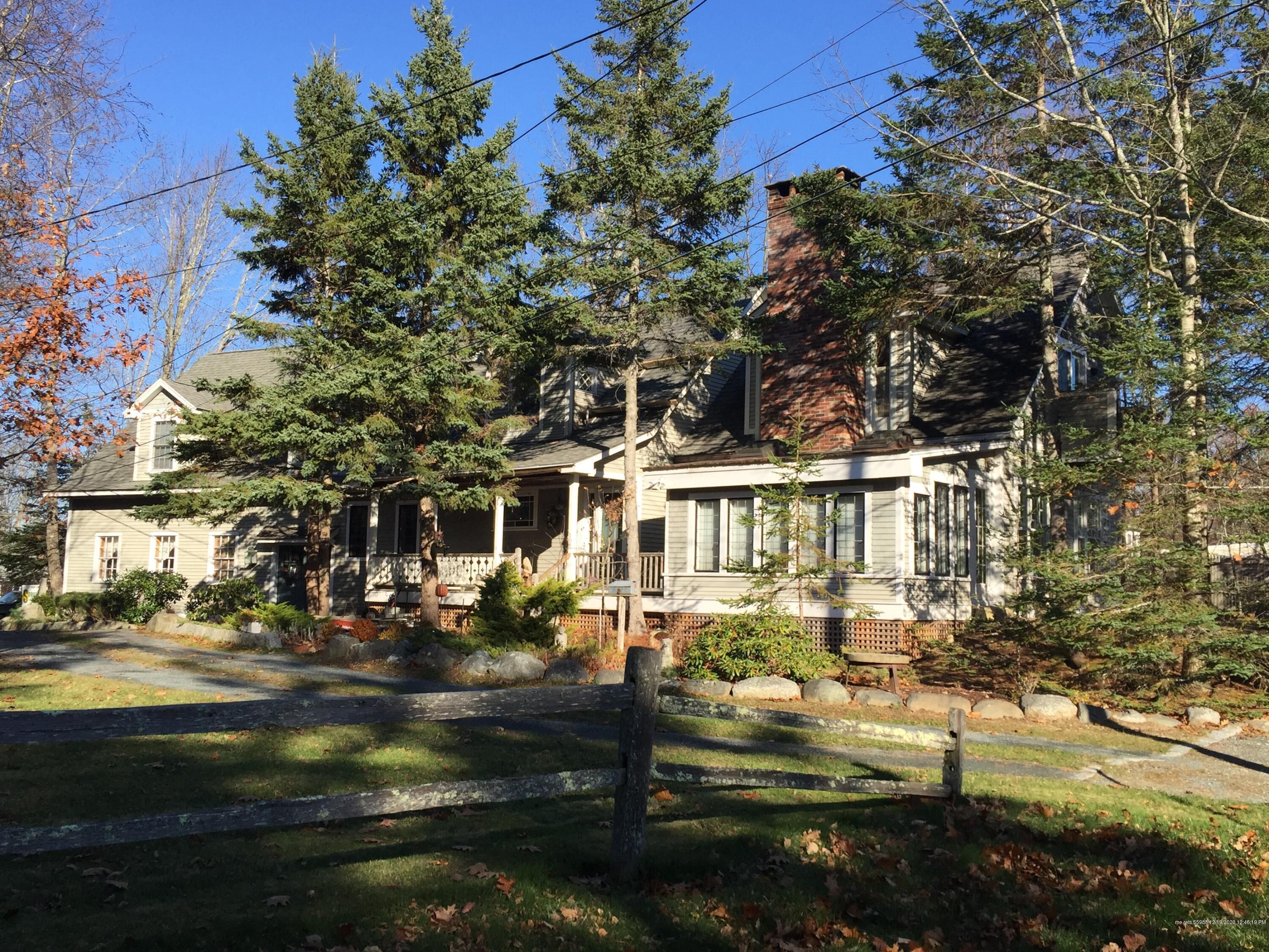 The stone floor entry hall opens through an antique stained glass door. With every attention to detail, the living room has 10' ceilings covered in 24 inch planks milled from old growth pine on the property. A floor to ceiling stone fireplace, an elegant oversized chandeliers and stone floors with substantial furniture create the atmosphere of Bar Harbor taste and traditions. The black floor to ceiling fully equipped kitchen with professional gas stove and a seating island is a chef's dream. The kitchen is furnished with everyday dishware to elegant china as well as supplies from linens to cookware.