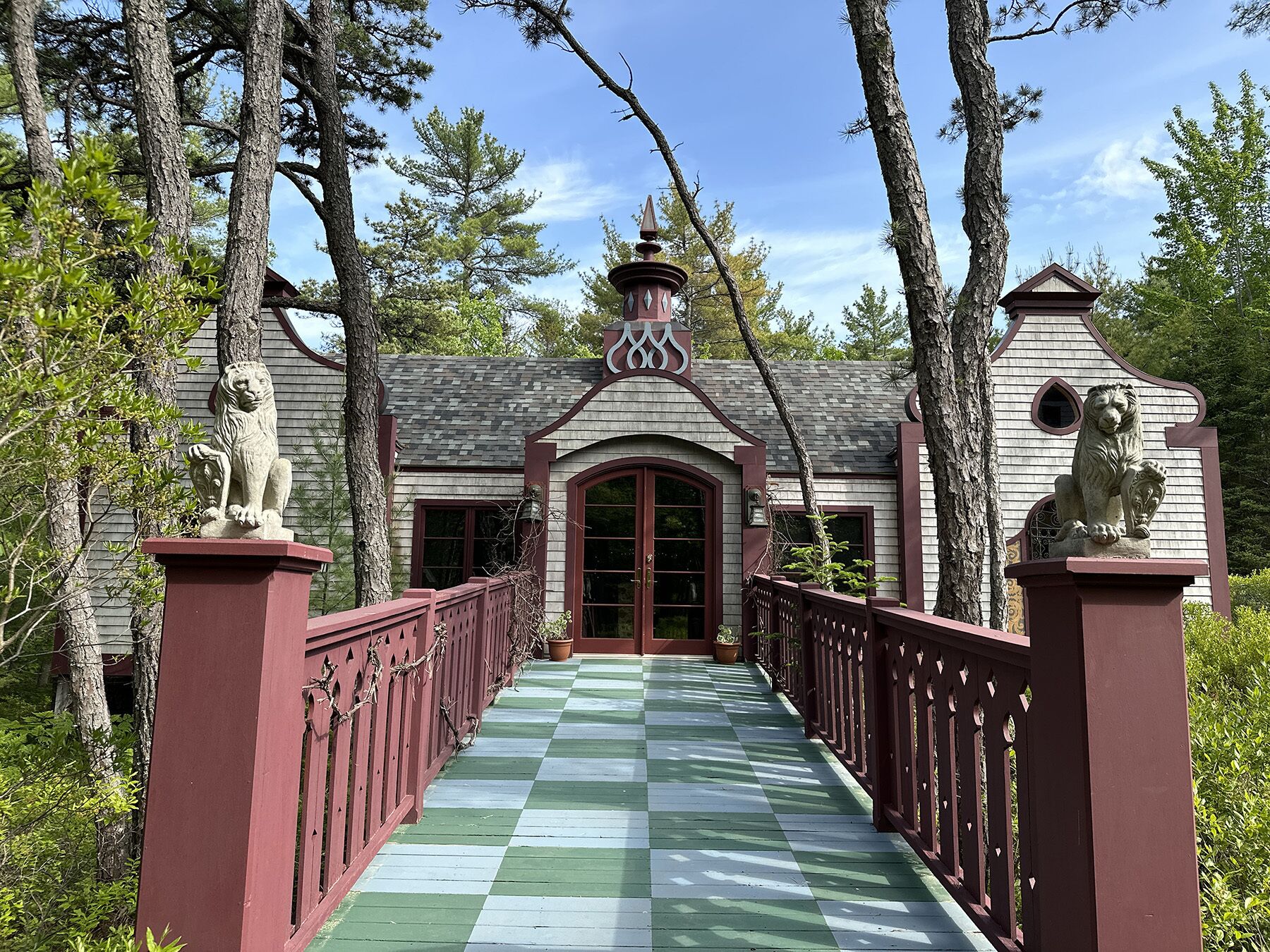 Perched high on the Lookout Point hillside overlooking Frenchmen's Bay with views of Porcupine Islands, Schoodic Peninsula, the Atlantic Ocean and the village of Bar Harbor. The Rockbilt estate entrance is bordered by two large stone pillars on either side of the driveway. The meticulous gardens and landscaping include unique and historic features grand anchor from a sunken Swedish ship and gifted by King Gustaf to the great grandfather of the owner; enormous rocks, stone art work, and significant garden sculptures.
