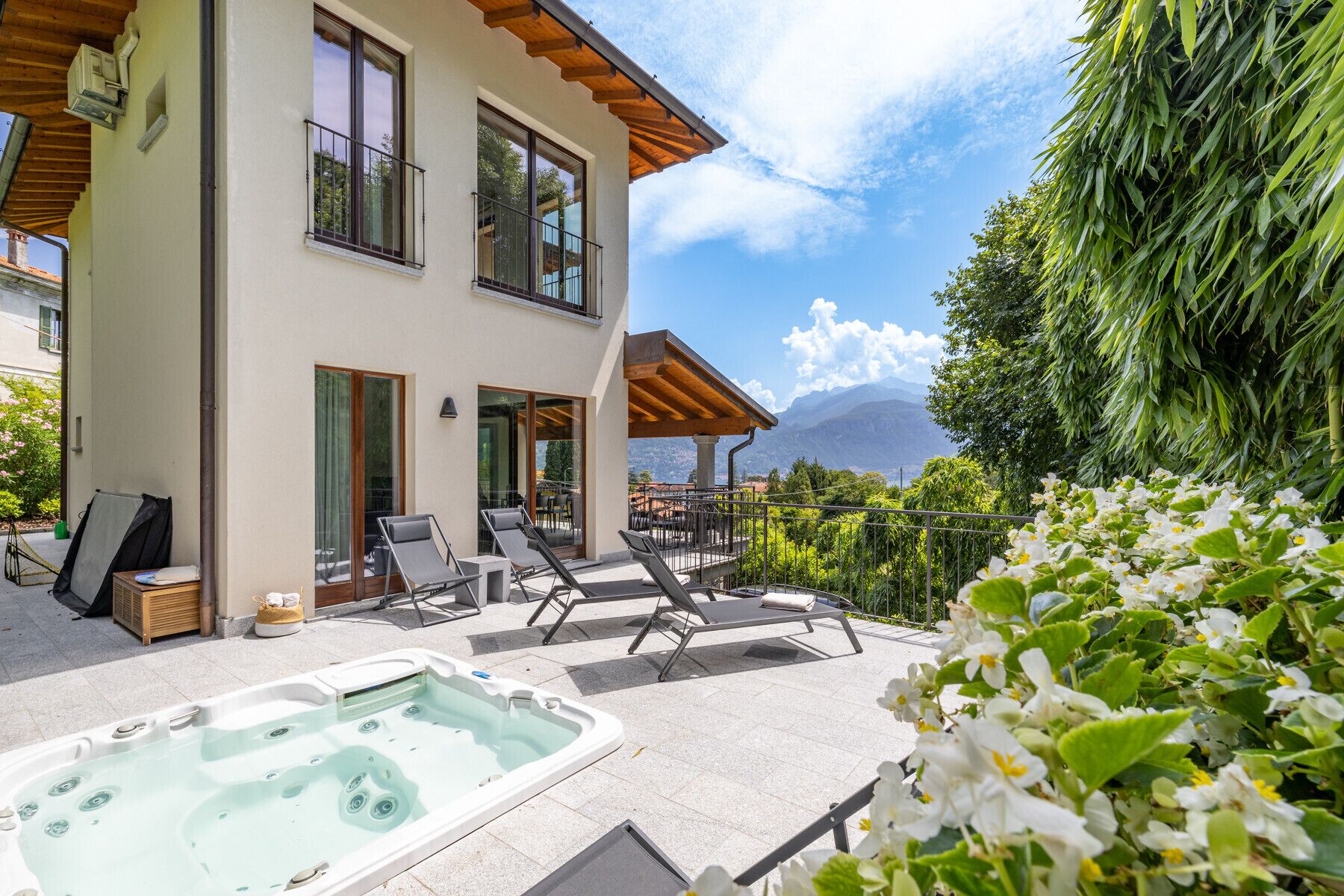 The Villa Navalia Marina has a spectacular roof terrace that's perfect for entertaining, with a Jacuzzi and designer loungers. Menaggio is within easy access and has fantastic restaurants and cafes, and it's easy to take boat trips all over the lake. Perfect for couples holidaying together, extended families, or families with teenagers or older children