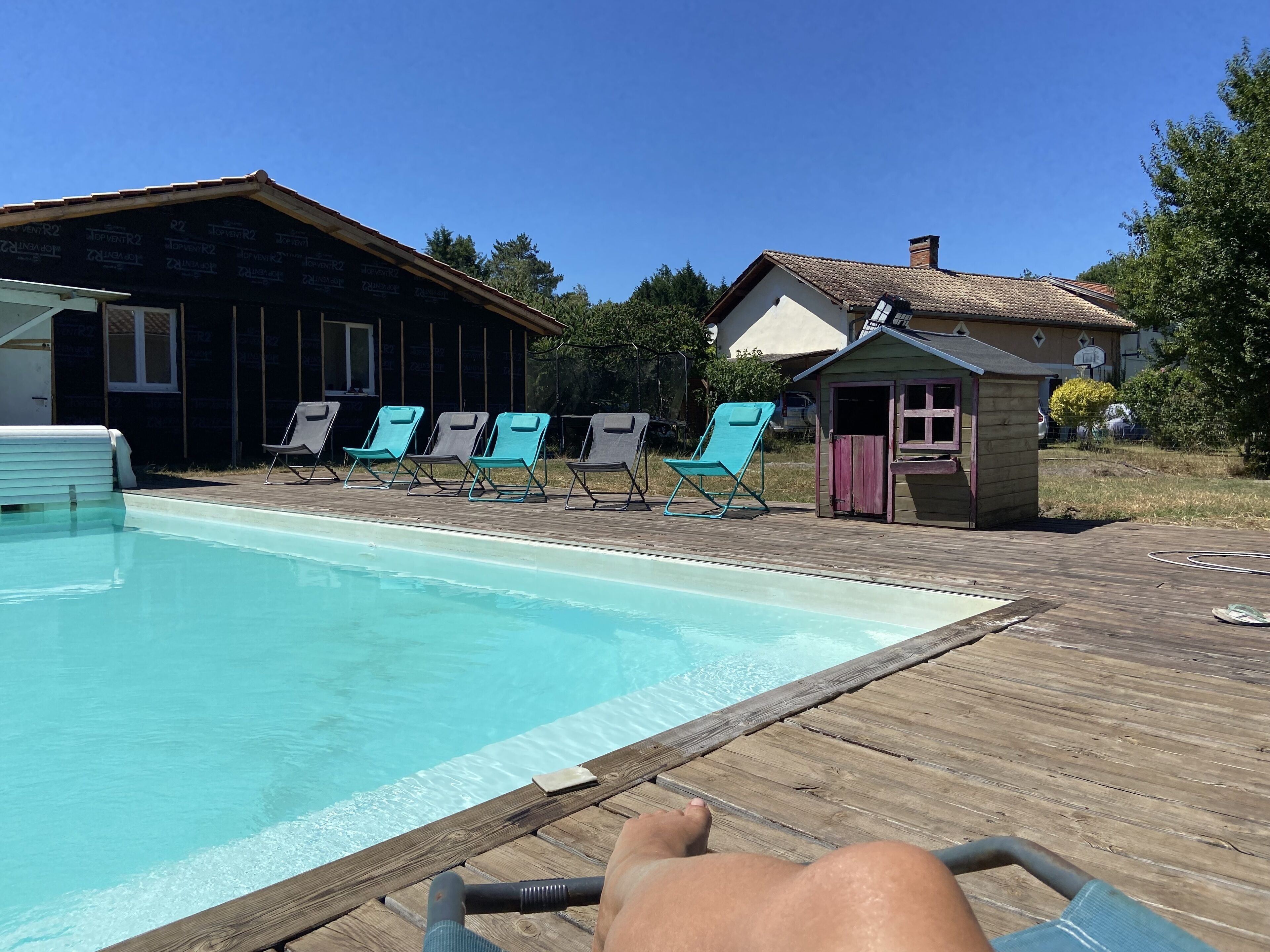 Villa for 4/5 people with 3 bedrooms on a 900m2 plot fenced in a small housing estate next to the forest. A large swimming pool of 10 by 5 M fully secure with games and sunbathing. One floor with bedroom and bathroom with shower. A ground floor with 2 bedrooms. A large living room of 50 meters facing south-west. A terrace with teak garden furniture with plancha and barbecue available.