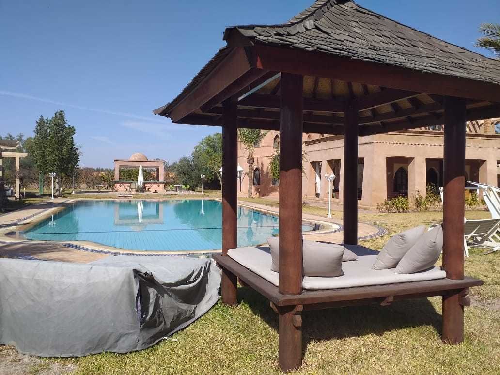 Deluxe villa a marrakech avec piscine chaufee offers accommodations in Marrakesh, 7.2 miles from The Orientalist Museum of Marrakech and 7.3 miles from Majorelle Gardens. The air-conditioned accommodation is 6.8 miles from Bahia Palace. The villa provides a sun terrace, a 24-hour front desk, and free Wifi is available throughout the property. Providing a patio and pool views, the spacious villa includes 5 bedrooms, 2 living rooms, satellite flat-screen TV, an equipped kitchen, and 6 bathrooms with a walk-in shower. A private entrance leads guests into the villa, where they can enjoy some wine or champagne and fruit. The villa offers bed linen, towels, and ironing service. There is a snack bar, and a grocery delivery service, packed lunches, and a mini-market are also available. The villa also offers an outdoor swimming pool and a hot tub for guests to relax in. For guests with children, deluxe villa a marrakech avec piscine chaufee features a baby safety gate. If you'd like to discover the area, hiking is possible in the surrounding area, and the accommodation can arrange a car rental service. Boucharouite Museum is 7.4 miles from deluxe villa a marrakech avec piscine chaufee, while Yves Saint Laurent Museum is 7.8 miles from the property. Marrakech-Menara Airport is 11 miles away, and the property offers a paid airport shuttle service.