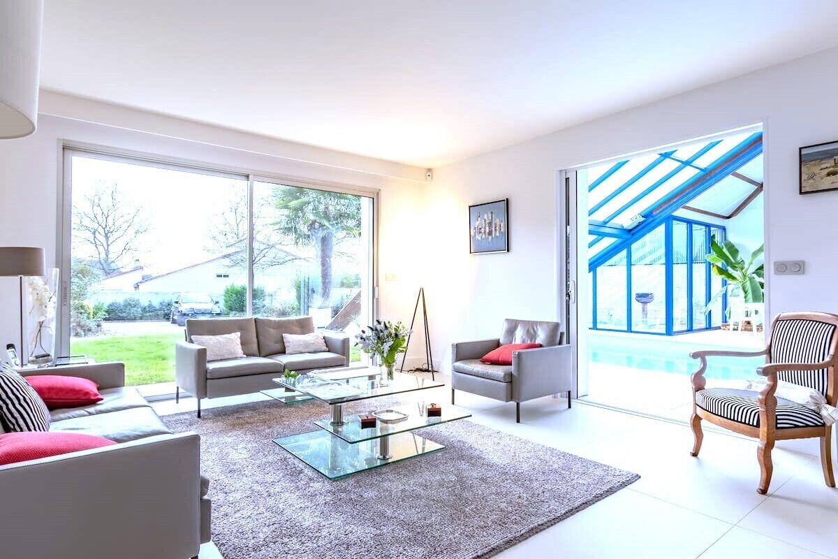 - "Beautiful house with loads of space. Well equipped for large group or family stays, including washing facilities. The indoor pool was a great addition and the glass roof in the pool room meant the room was warm even on a cloudy day. Easy to walk into Nantes through the park and along the river side in 30 mins, or around €10 for a taxi. Supermarket within short walk. Would highly recommend. My only tip would be to bring an extra towel for the pool as the house only had one per person."
