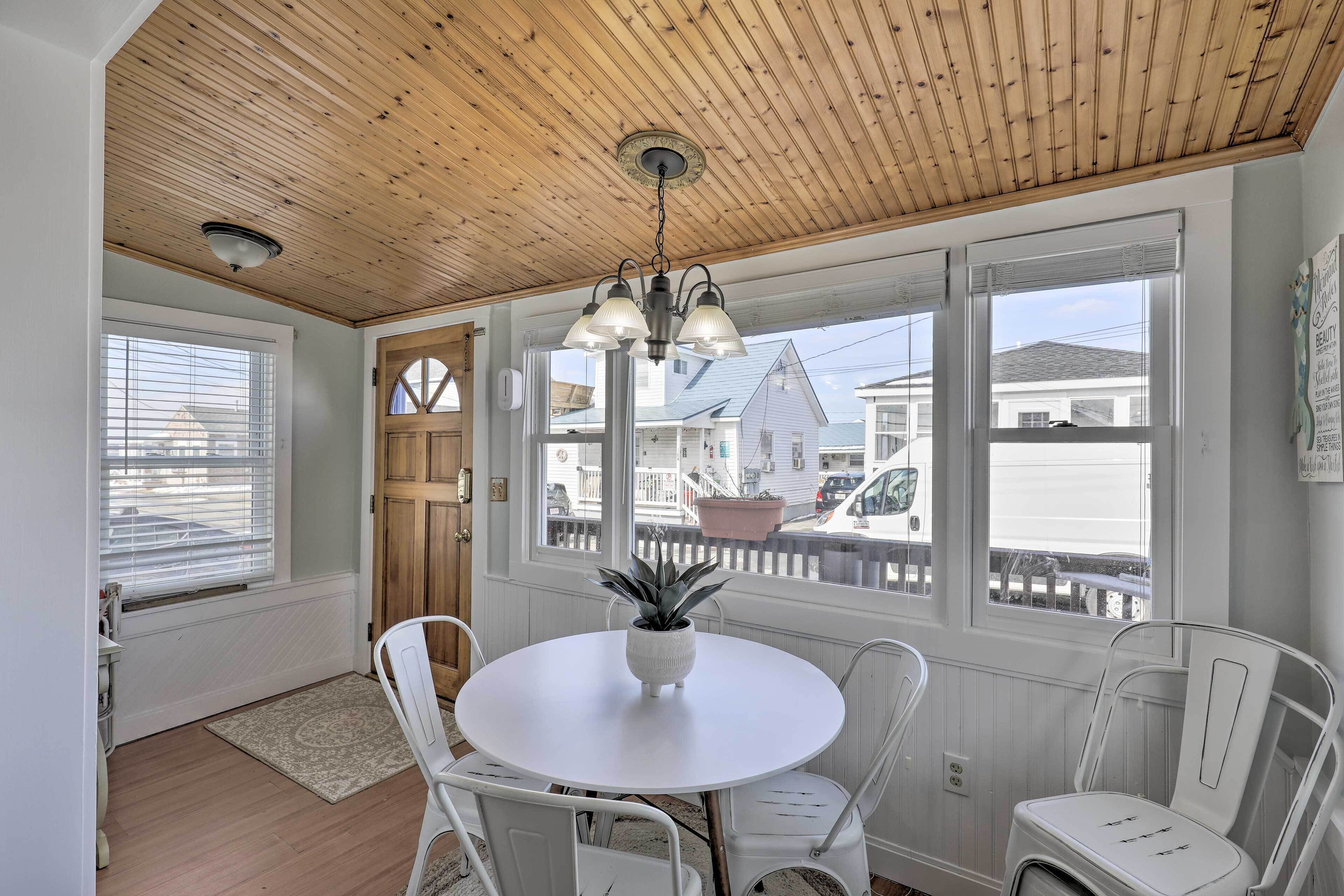If you enjoy bustling summer activities, the front porch is the place where you watch the ocean, pebble beach, scenic walk, and beach goers. There, you do morning exercise or yoga workout in gentle ocean breezes or just cozy up in a rocking chair over a drink or snack and leisurely watch the action.