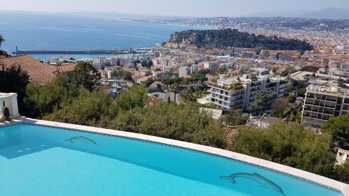 One of the most beautiful views over the Bay of Angels, very quiet for a city like Nice and easily accessible from the motorway, airport or train station, as it is well served by the line 54 bus. The access road is relatively narrow and requires care.