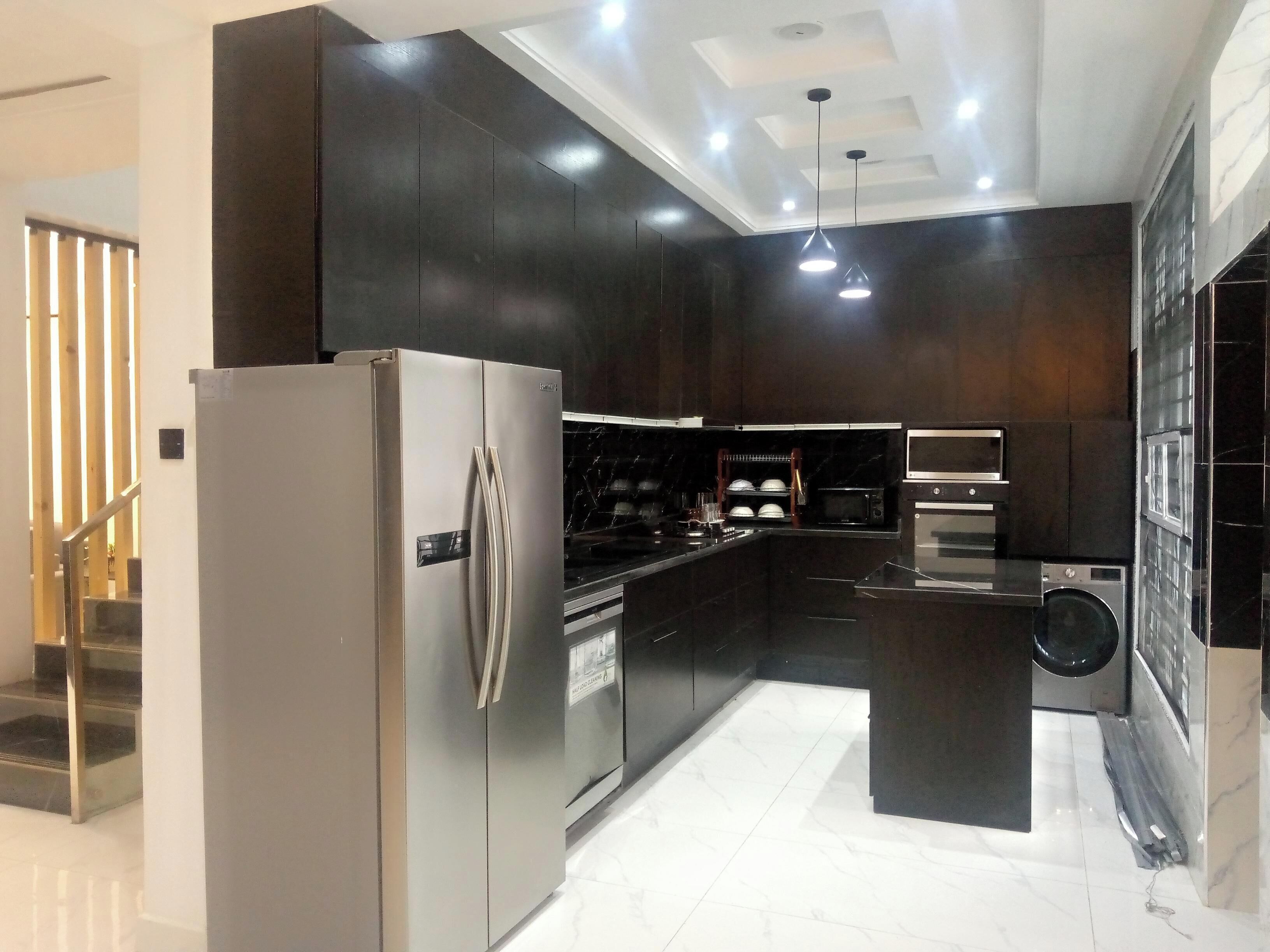 Living Room: The living room is beautifully designed with modern furnitures and lightings. It’s equipped with 75 Inches smart SamSung TV, Compact Plus DSTV subscription, 2 units of 2 HP Air Conditioner, Netflix, Internet service, Inbuilt Ceiling Speakers with amplifiers, Smart Home with Alexa Voice Control Systems, Automated Smart Doors, Automated Curtains/Blinds, Spacious Living Space for celebrations, Visitors Toilets, Dinning Table, Coffee Table and Professional workspace.