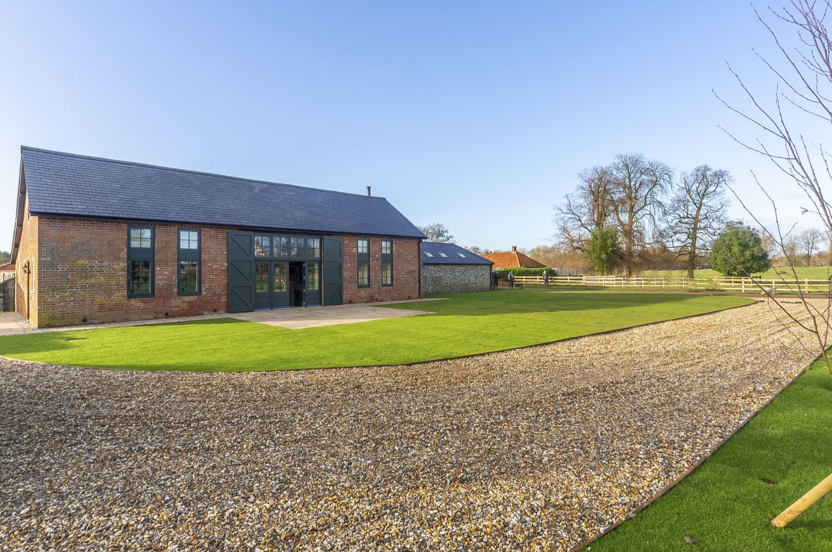 Norfolk Hall can comfortably accommodate up to ten guests across its five well-appointed bedrooms. In the main barn, are two super-king rooms with en-suite bathrooms, both of which can be set up with twin single beds on request. In the stable block is the impressive master bedroom with its four-poster bed, sitting area and luxury en-suite bathroom complete with a free-standing William & Holland copper bath tub. Also in the stable block, are a further two double bedrooms, both boasting en-suite shower rooms.
