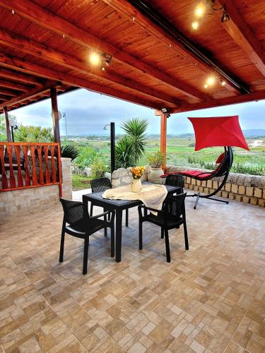 Villa Paradisoè a beautiful country house with pool located in the south-eastern Sicily, between the towns of Ispica and Rosolini. The villa, located in a quiet and sunny, offers a relaxing view of the surrounding countryside characterized by ancient olive trees, carob and citrus fruits that create an evocative rural landscape. A well-kept garden with lawn embraces the house with large terrace and a beautiful infinity pool with Jacuzzi. Recently built, the house is on two levels. On the ground floor are a living room with fireplace, un'accessoriata built-in kitchen, a double bedroom and a bathroom with toilet and bidet. A marble staircase and iron leads to the first floor consists of a master bedroom with balcony, a bedroom with a double bed and a bathroom with shower. Outside the nearby annexe houses a second complete rustic kitchen with barbecue and pizza oven. The villa also has central heating, Wi-Fi, satellite TV and washing machine. Nearby there are also the beautiful baroque towns of Modica, Noto, Ragusa-Ibla and Scicli, but also the beautiful beaches of Vendicari Reserve, Pozzallo and Portopalo.