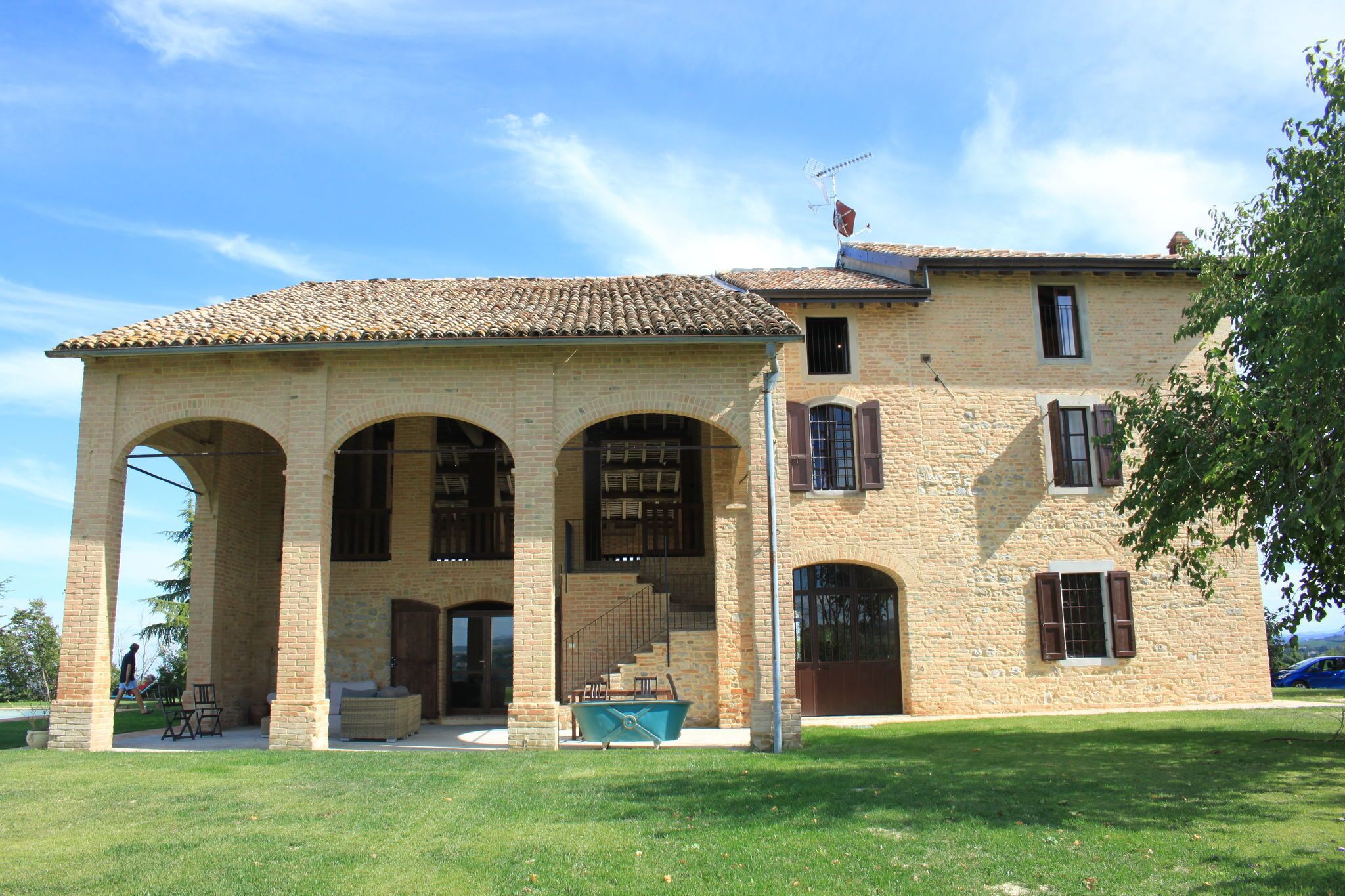 Ca' de Poi dominates the underlying valley below, with a 360° view over the whole area. With its two porches, a 20-metre swimming pool and a living room with centuries-old columns supporting the vaults, it is considered the 'queen' of I Casali of Castello di Tabiano.