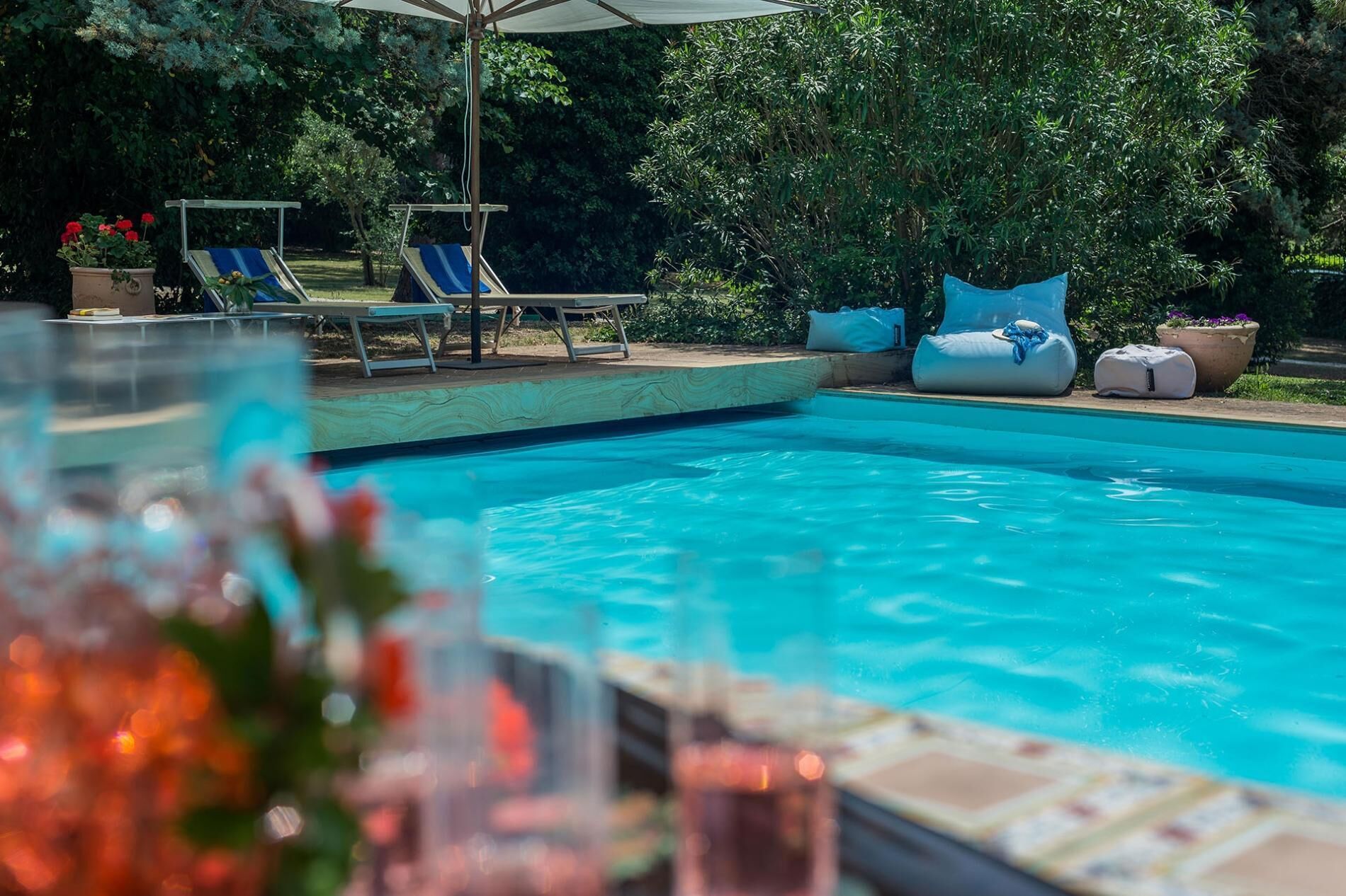 Villa Rossini is a charming villa with private pool in Le Marche, just at few minutes from the Adriatic coast and the city centre of Pesaro. Immersed in a beautiful private park, the villa has been restored keeping intact the architectural dictates of the local rural aristocracy. This seventeenth-century structure, decorated with great care by the owners using family furniture and memories, offers the guests a cosy and intimate atmosphere. The accommodation consists on a greater portion of the farmhouse and is characterized by a particular organization of the interiors. The outside area, protected by thick vegetation and the large swimming pool are perfect to spend sunny summer days in complete relax. The vacation house borders on a property which has a completely independent entrance, not compromising the guests’ privacy. Garden and pool are for exclusive use. The property is entirely fenced-in.
