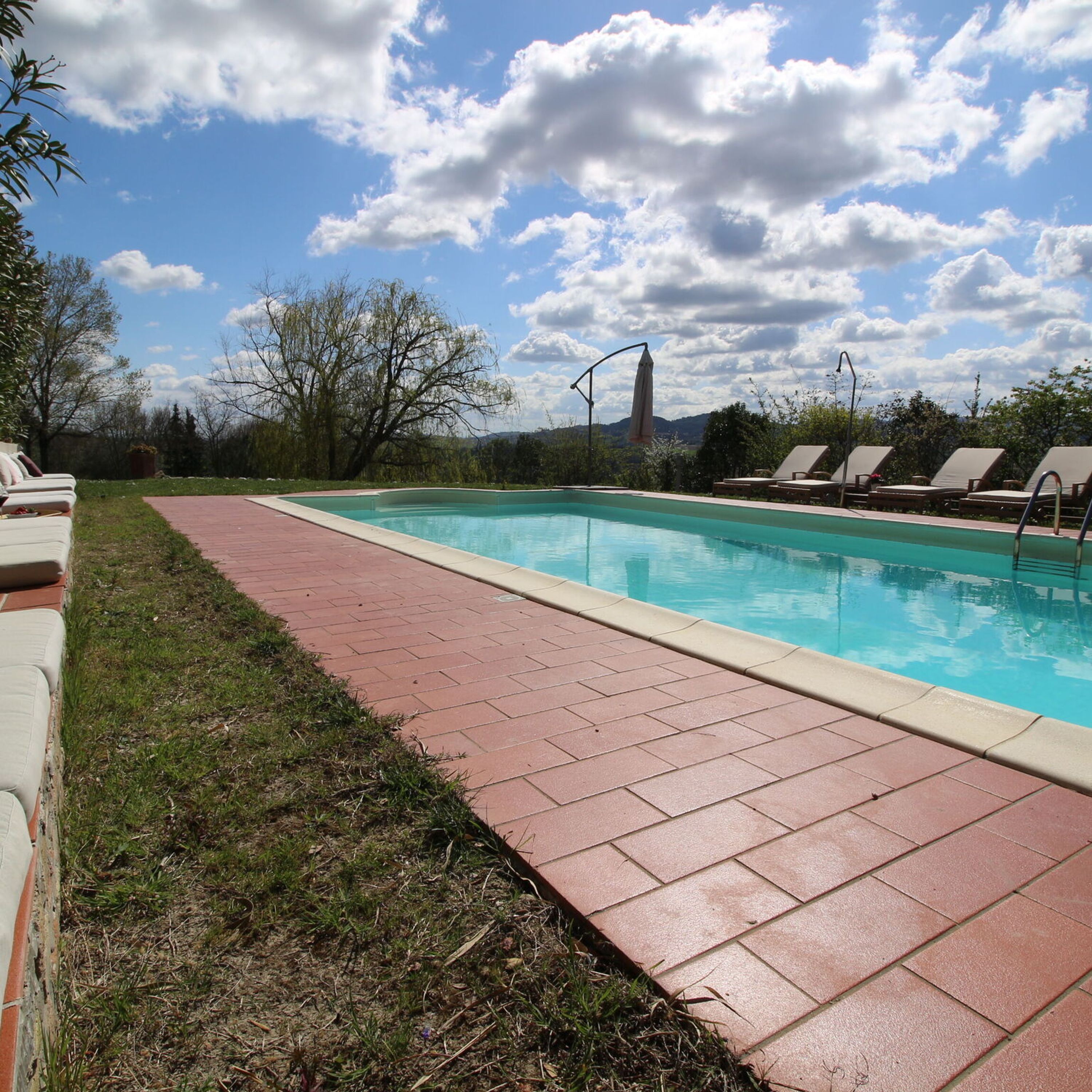 - Swimming Pool: Guests have access to a large swimming pool of 5x10 meters with diving board equipped with sun loungers, umbrella, tables and chairs with a breathtaking view over the surrounding valley, ideal for enjoying a different sunset every evening.