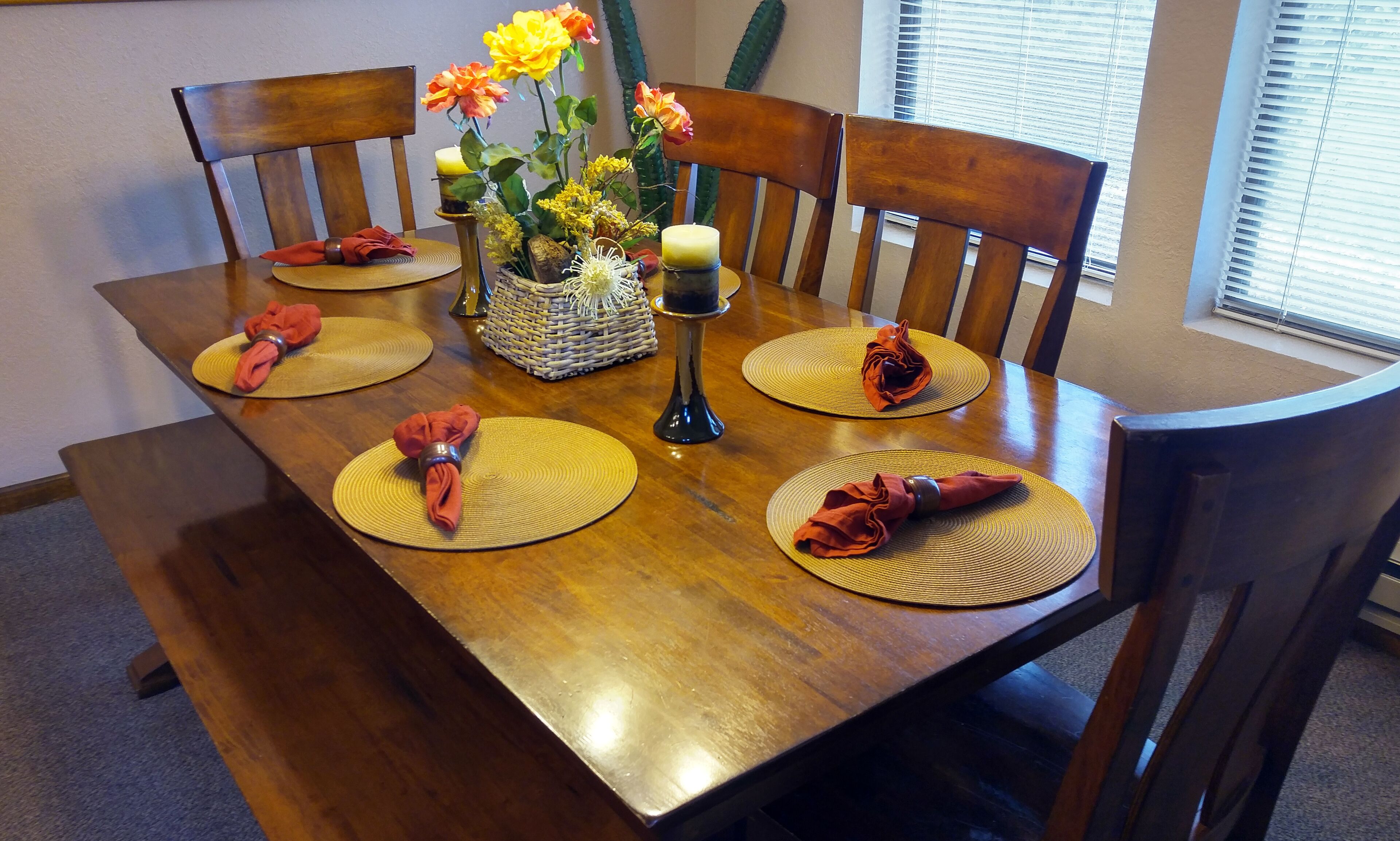 Our kitchens are fully equipped with all major, full sized appliances, including refrigerator, stove, oven, microwave, and dishwasher. Plenty of counter space allows for plenty of room to cook or entertain. Complete dining sets (plates, bowls, silverware, glasses, and coffee mugs) are available for guests use. Kitchens are also stocked with coffee makers, cookware, cooking and serving dishes and utensils, and uniquely decorated adjoining dining rooms.