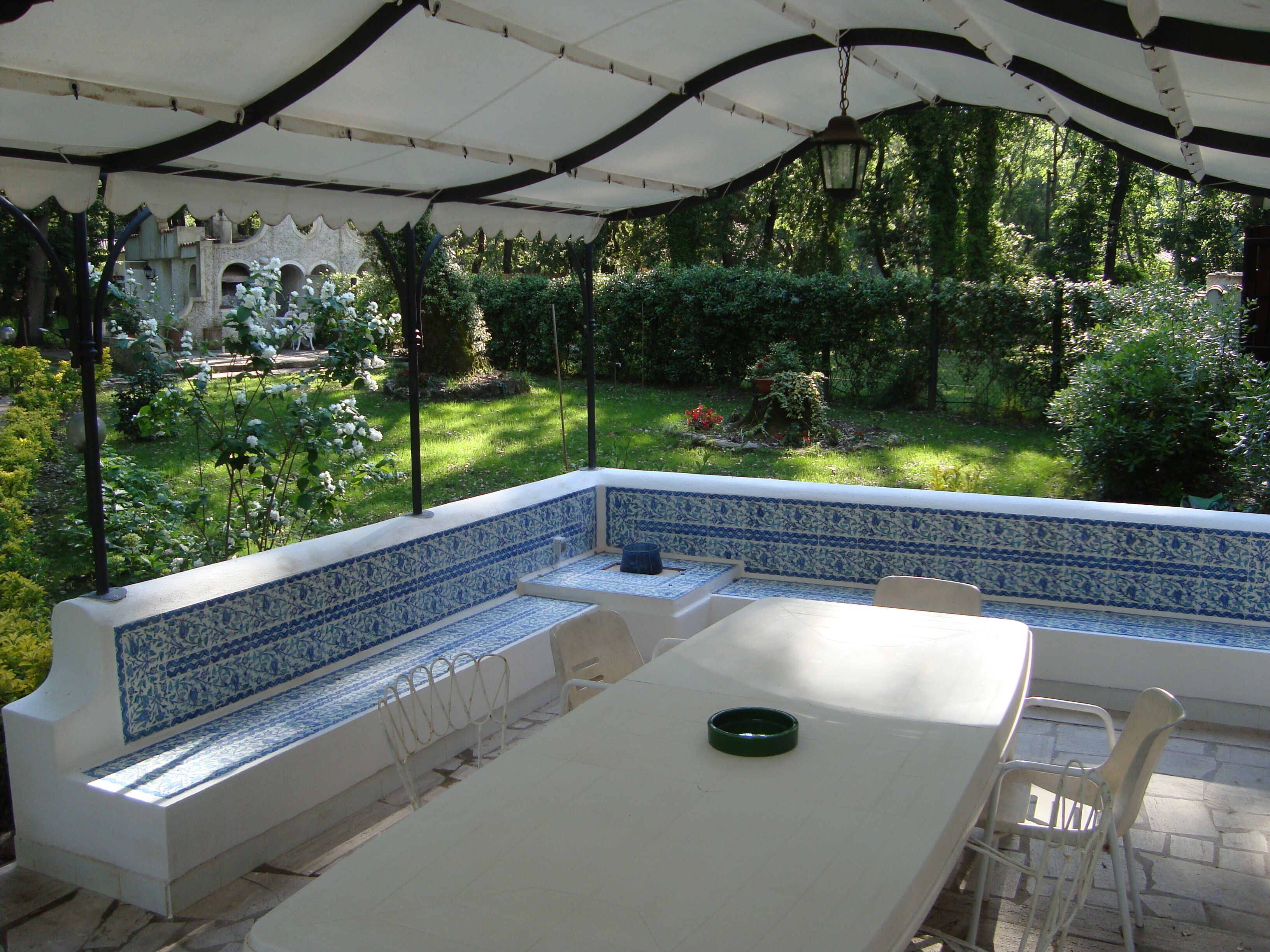 The villa is distributed on two floors. On the ground floor fully equipped kitchen, double living room, double bedroom with bathroom that overlooks the park through a romantic arch. Upstairs there is a double bedroom with bathroom with two large windows and a small bedroom with two single beds. On the back of the house a large patio with a gazebo and a built-in barbecue complete the structure.