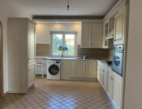 WIFI for internet connection in all environments and also outside, garden with Mediterranean plants, automatic gate and parking, pedestrian entrance and above all the possibility to eat outdoors thanks to the presence of barbecue, wood oven, umbrella with table ( from 10 seats) and outdoor chairs. The Villa also has armored doors and alarm system of the latest generation, automatic gate, two bathrooms, living room, kitchen (with 2 refrigerators and 1 small freezer) and balcony on the first raised floor, n. 3 bedrooms on the second floor, n. 1 bedroom and 1 double sofa bed in the basement (as well as another refrigerator), for a total of 9 beds. In the living room on the 1st floor there is also a double sofa bed for a further 2 guests. The washing machine is also available. Lastly, the Villa has kitchen utensils, and clean sheets and towels are provided at the beginning of each stay!*