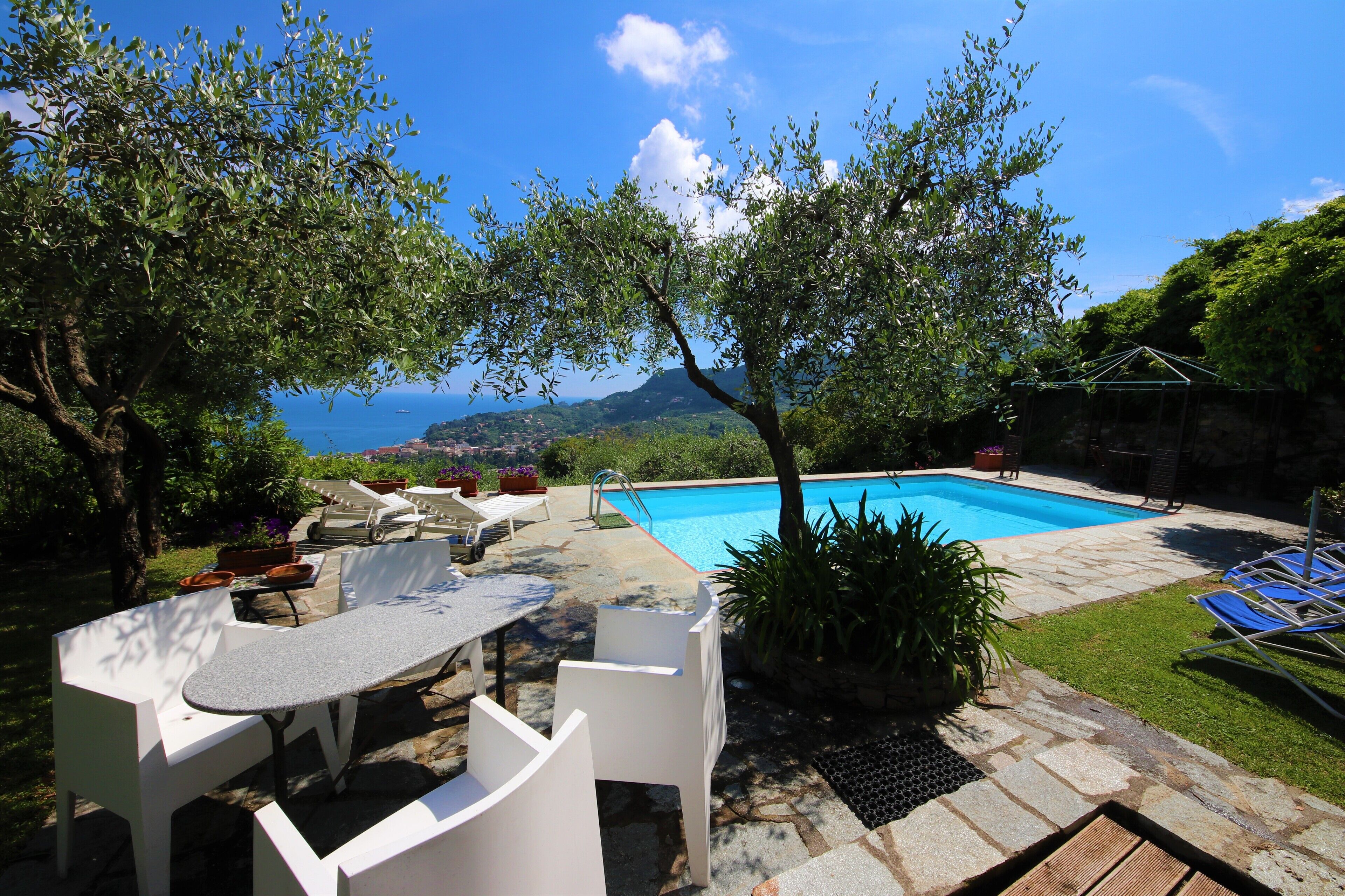 Villa Pitagora sits in an elevated position overlooking the stunning waters of the Italian Riviera. The Liguria region is small in size when compared to other regions of Italy, but this means that the area retains a lot of surrounding countryside and woodlands which exist alongside pretty towns and little fishing villages.
