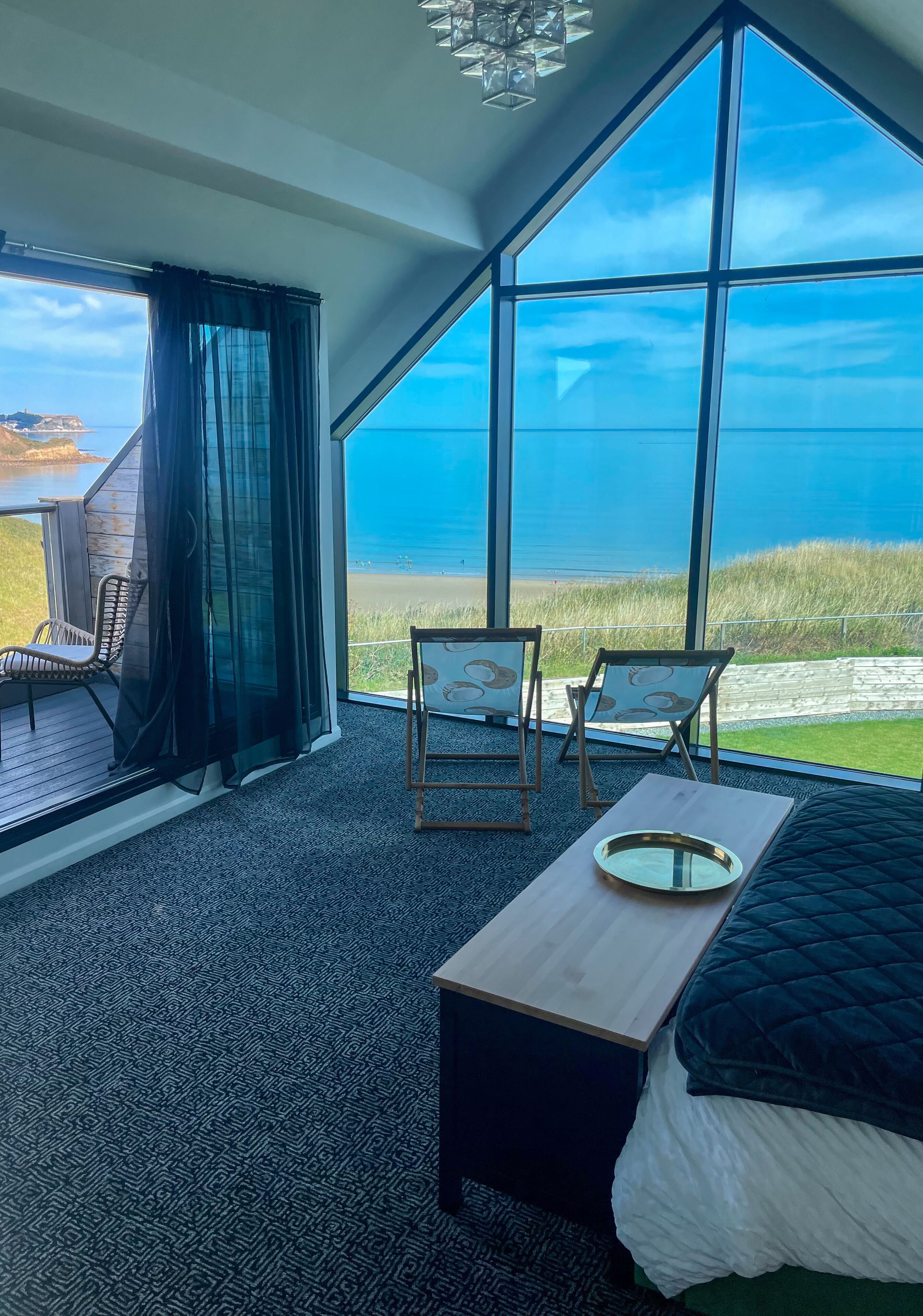 Up the winding staircase we have 2 large bedrooms each with kingsize beds and balconies with breathtaking sea views. The master bedroom has floor to ceiling Windows with the most amazing view of the bay and north sea. Looking for that perfect morning coffee spot? Then it has to be the master balcony with its view of sprawling cliff tops, sea views and castle ruins. There truly isn’t much better views to wake up to. The second bedroom has a just as spectacular view from the balcony but with the added benefit of en-suit bathroom.