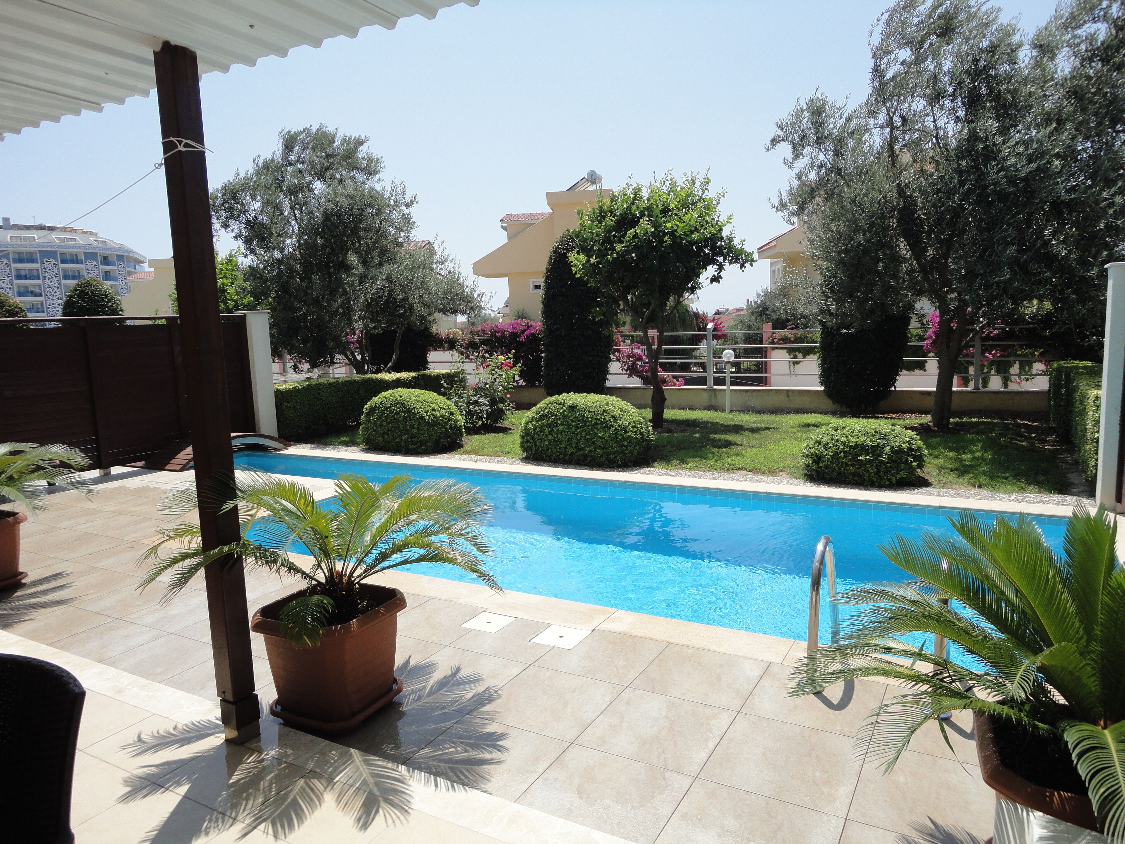 Close to Side sandy beach,in a luxury complex but totaly private villa.Private swimmingpool,garden and teracces.