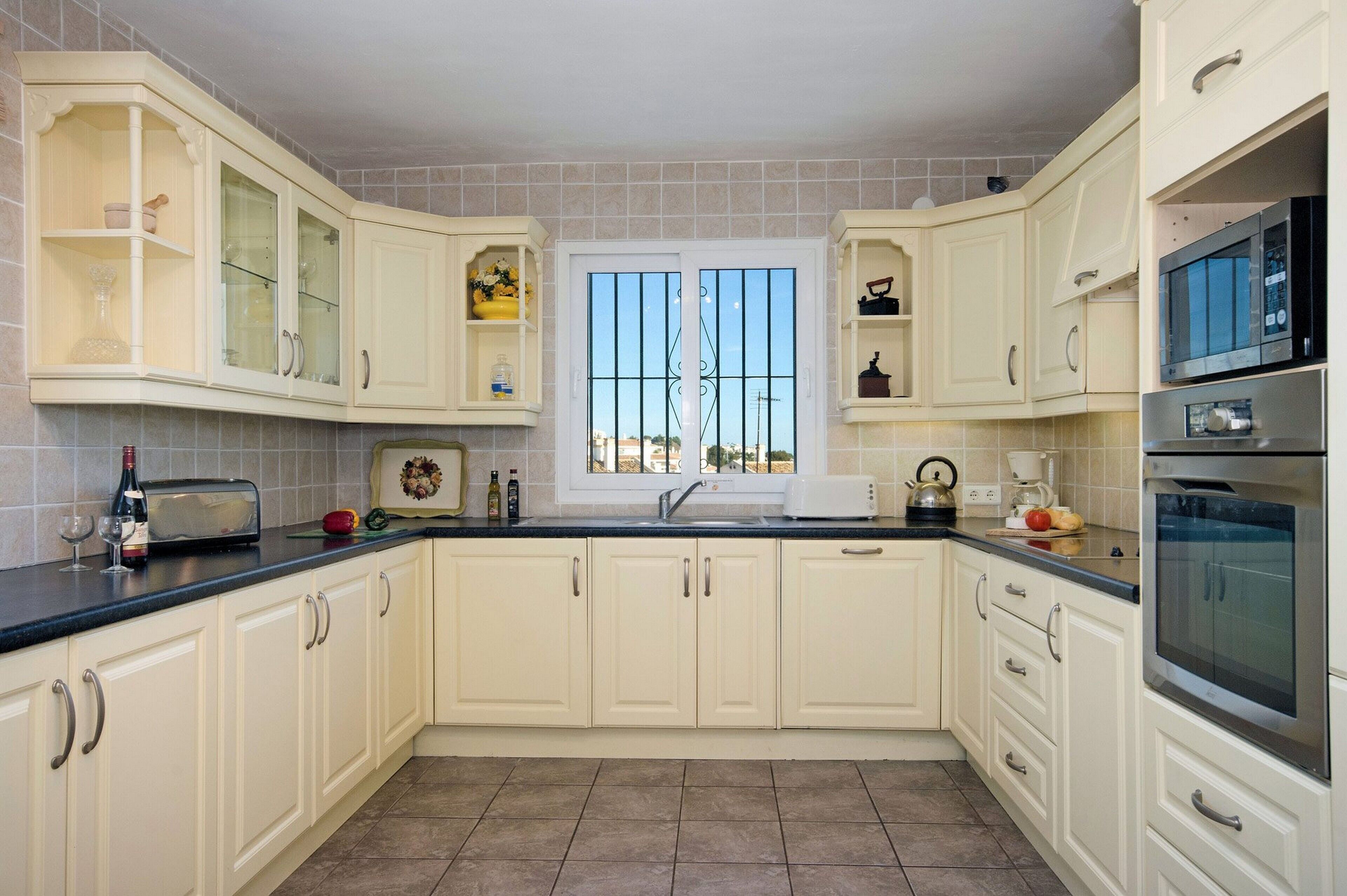 - A fully stocked kitchen with a breakfast bar.