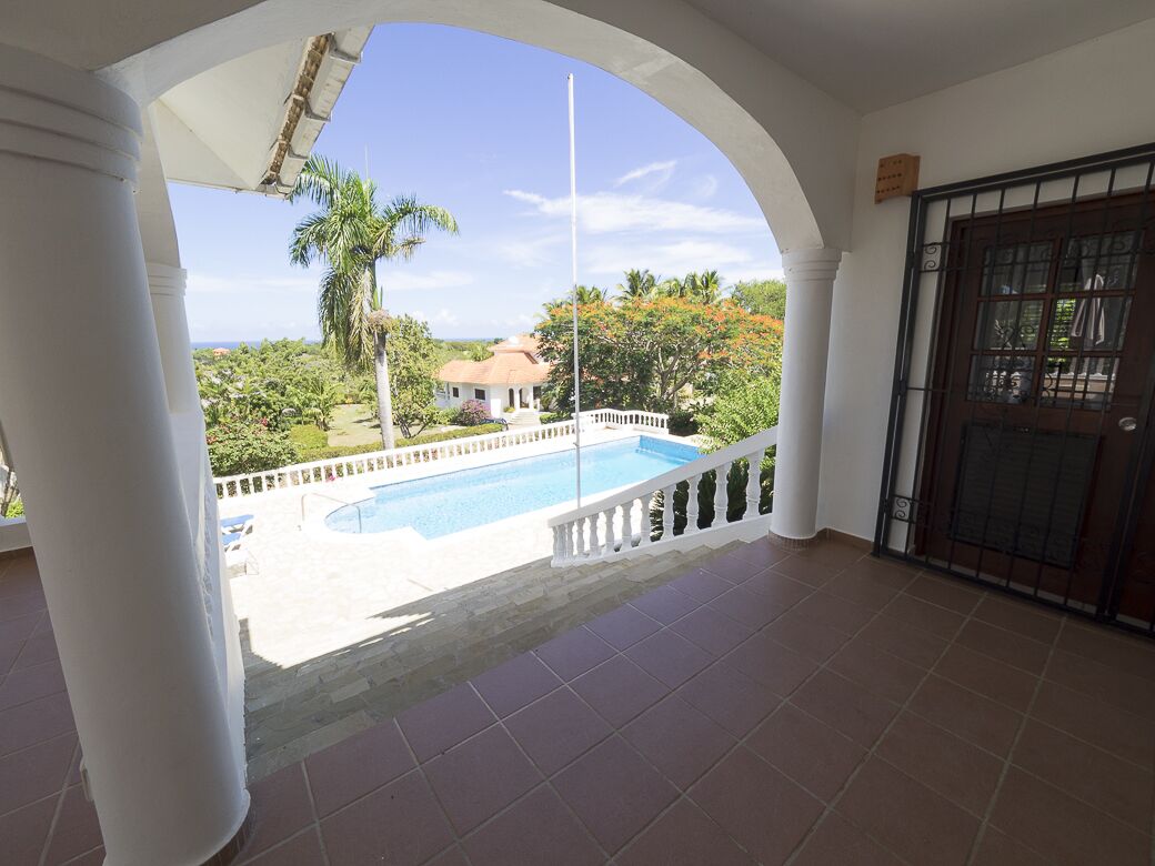 This stunning private 4b/4b villa is located in a quiet area in the hills of Sosua. It is just 10 minutes by car to Sosua downtown with its busy nightlife and restaurants; it is also 15/20 minutes from Cabarete's Kite Beach. The main feature of this villa is its big covered terrace overlooking the large pool and tropical gardens. It has panoramic views of the ocean past the tropical trees which provides that added feeling of tranquility. Its elevated position in the hills also benefits from cooling breezes all year round. The property is ideally suited for couples and families.
