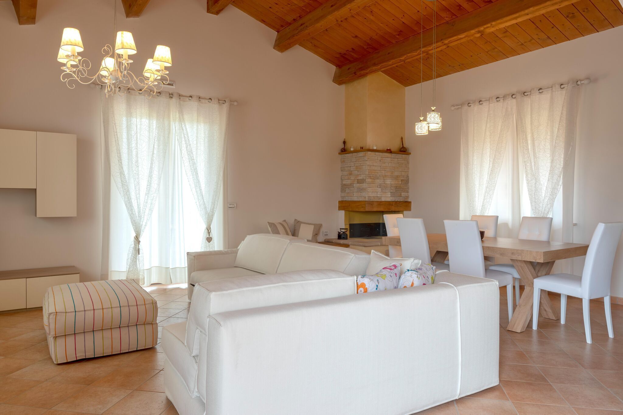 Included in the price are electricity, bedroom, kitchen and bathroom linen, final cleaning, use of the swimming pool with treadmill and trampolines for water aerobics, laundry, wood-burning oven, television, WiFi, bicycles, trampoline.