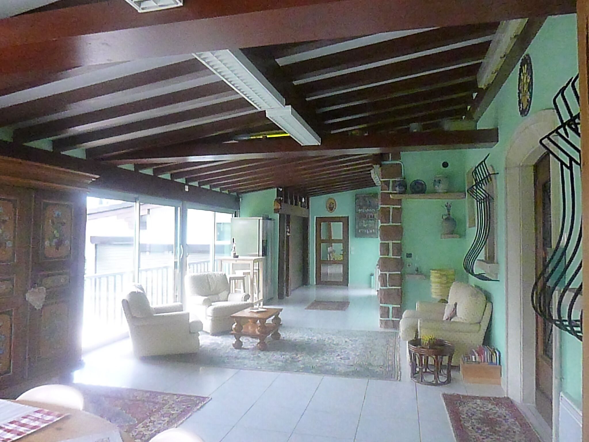 On the ground floor of 50 m2 large veranda overlooking the garden, Master bedroom with dressing 1m60 bed, TV and private bathroom, living room with fireplace and TV library, fully equipped kitchen room garage playground, barbecue terrace, garden and private courtyard.