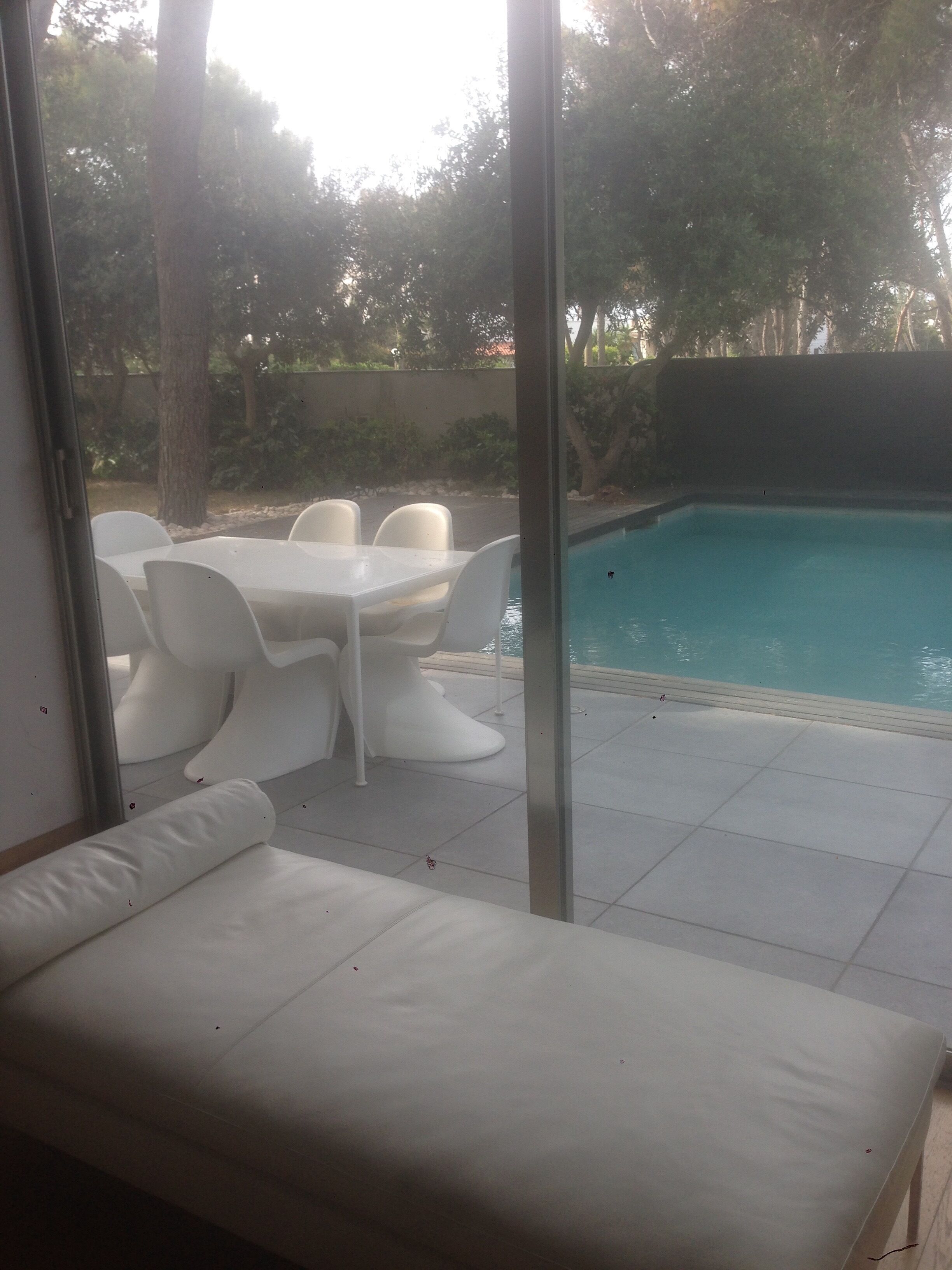 This lovely area outside of the trullo is walled with large openings out onto both the pool and land areas.