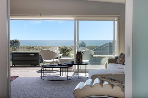 rooms that beckon you to unwind and the living space opens to an expansive deck where you can sit and take in the beautiful ocean panoramas. An outdoor fireplace provides the perfect ambiance, an ideal place to relax with a drink, adding a touch of magic to your evenings. With a state-of-the-art design and ample space in the butler’s pantry, the kitchen offers all the modern conveniences you could need. The easy-to-use home automation system allows you to effortlessly set the mood and environment of the house to your liking. The open-plan dining space enables you to host gourmet meals in style and features a large gas fire, setting the ambience for unforgettable dining experiences.