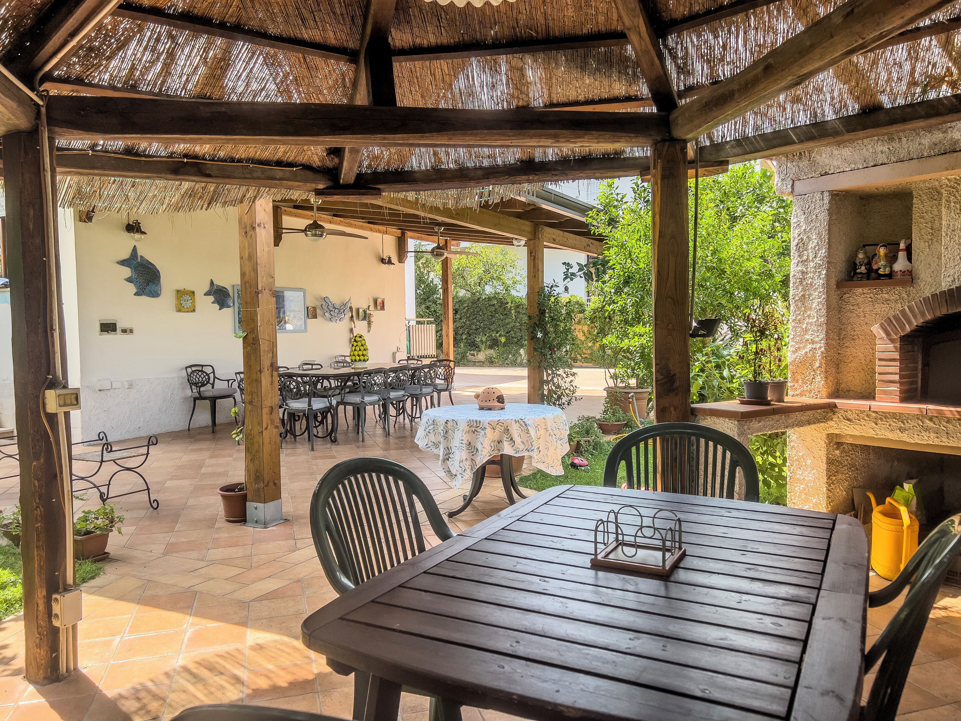 It enjoys a large garden, with olive and vine trees, orange and lemon trees, with a large pergola that ensures shade in the hot summer period.