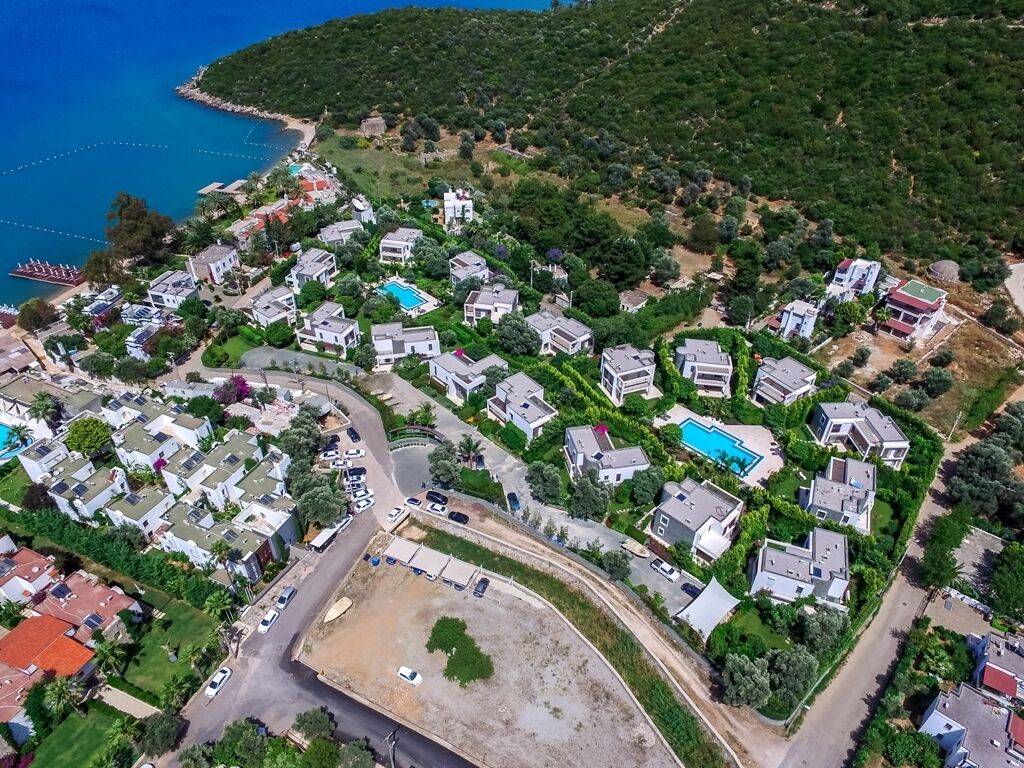 Located by the sea in Torba on 13,000m2 land with 19 Villas. It has a private garden, open parking area, there are also two swimming pools which are 130 sqm and 105 sqm inside the complex. The complex is managed professionally and offers 24 hours security, concierge and garden care services. There are private pier and bar-restaurant on the beach along the coast. The city center is 7 km and Milas airport is 35km away.