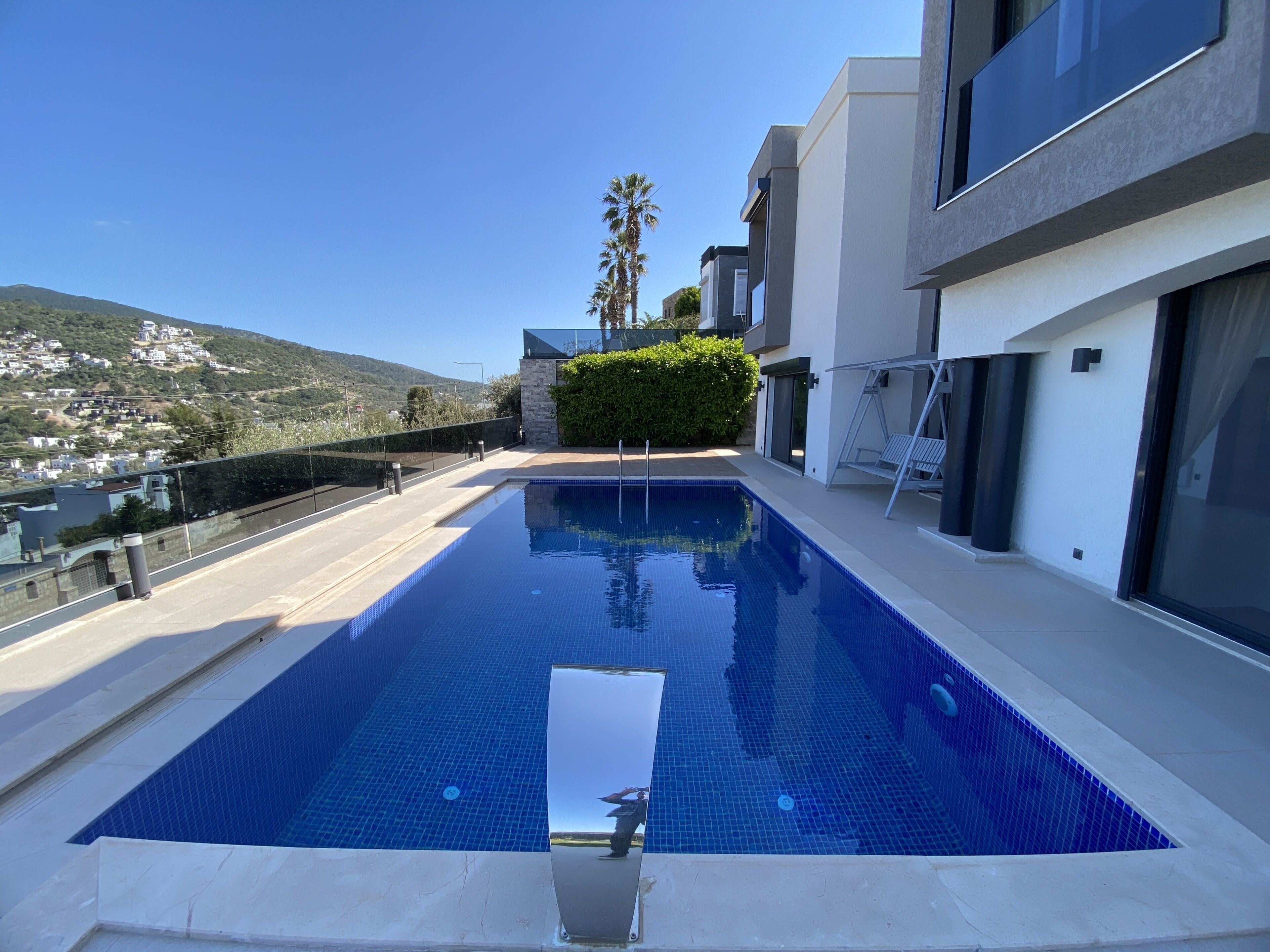 The villa is a short 15-minute walk to the resort and beachfront, where you’ll find a variety of restaurants and bars. For even more options, the vibrant resort town of Bodrum is just a 10-minute drive away, offering a wide range of amenities. The villa’s location is superb, just a 5-minute drive from one of the area’s premier 5-star resorts, Jumeirah.