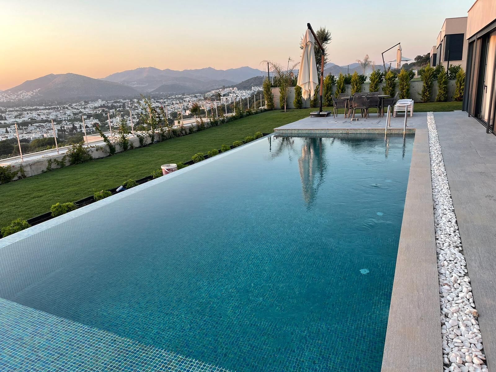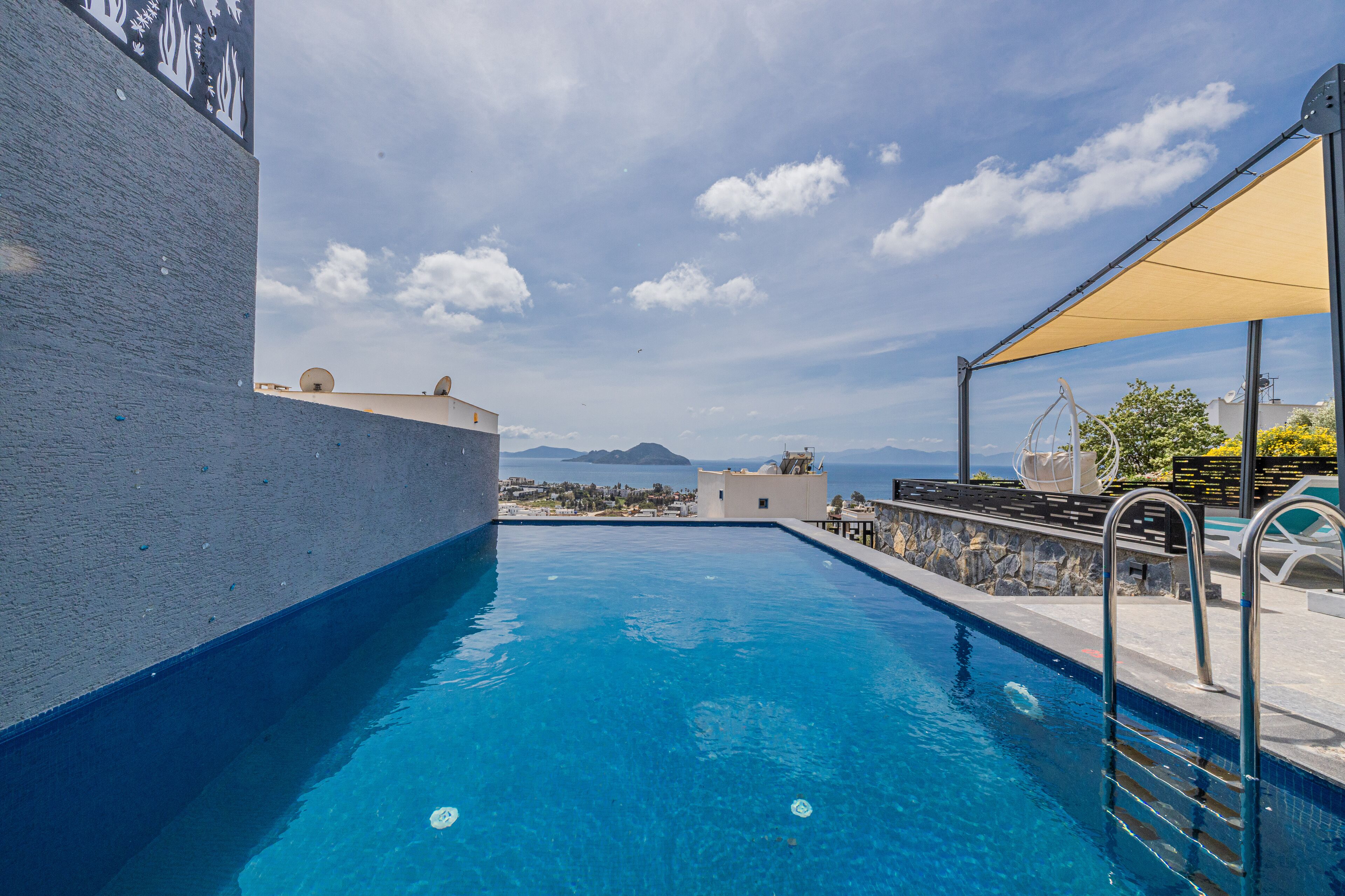 Located on the D-Marin hills on the Turgutreis Akyarlar road, the hotel offers the most beautiful panoramic view of the Aegean Sea. Photos are taken from real photo shoots. There is an infinity pool, hot tub and sauna. Our villas are designed according to summer and winter conditions.