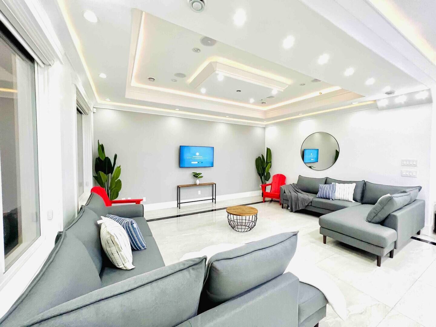 Media Room and Wet Bar: A standout feature of the rental unit is the media room, complete with a projector and a 120" screen. This creates a cinematic experience for watching movies or shows. The full-service wet bar, along with the Sub Zero wine fridge, offers a perfect space to relax and unwind.