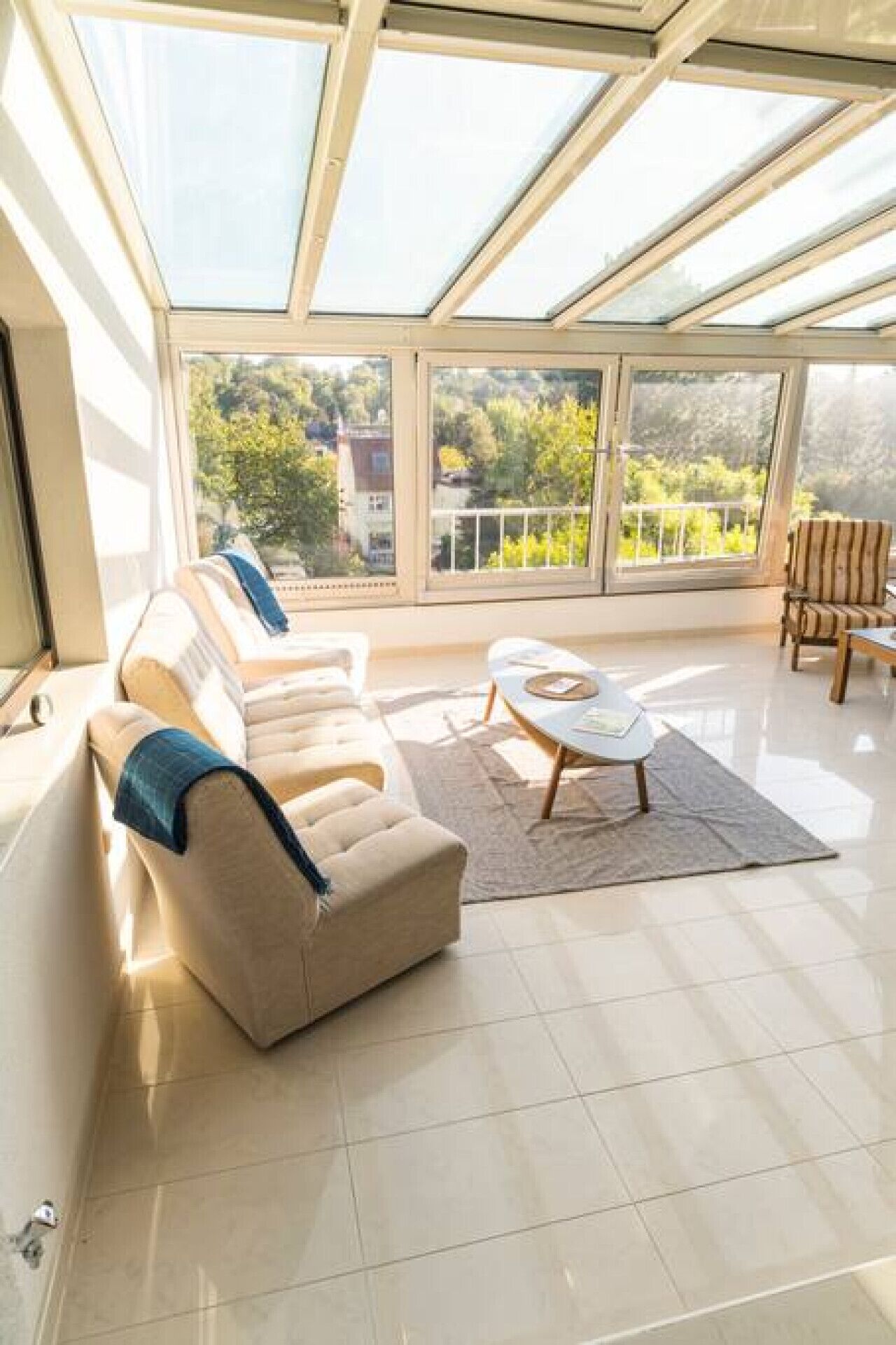 With a total living space of 350 square meters on two floors, the villa offers accommodation up to 12 people in 6 separate bedrooms. The three luxury bathrooms with a nice and roomy shower and a comfortable bathtub offer relaxation after a busy day of exploring the city. The fully equipped kitchen invites you to prepare your own home-cooked meals, which you can then enjoy at the dining room as well as on the terrace on ground floor or in the light-flooded winter garden on first floor used as a living room.