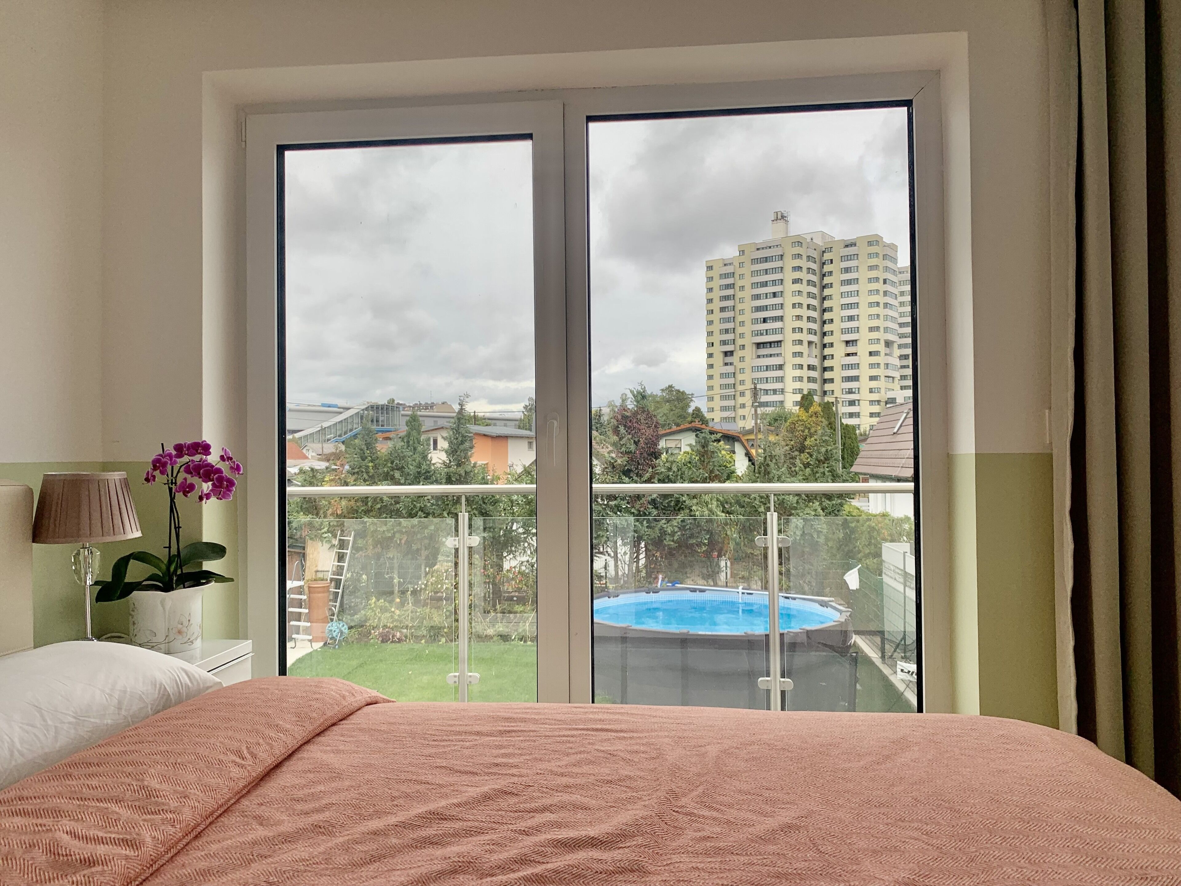 The holiday home "Villa Jäger with Pool" in Vienna offers everything you need for a comfortable holiday. The two-storey accommodation consists of a living room, a fully equipped kitchen with dishwasher, two bedrooms, a bathroom, and a guest toilet, and can accommodate up to five people. Amenities include Wi-Fi (suitable for video calls), three smart TVs, heating, and air conditioning.