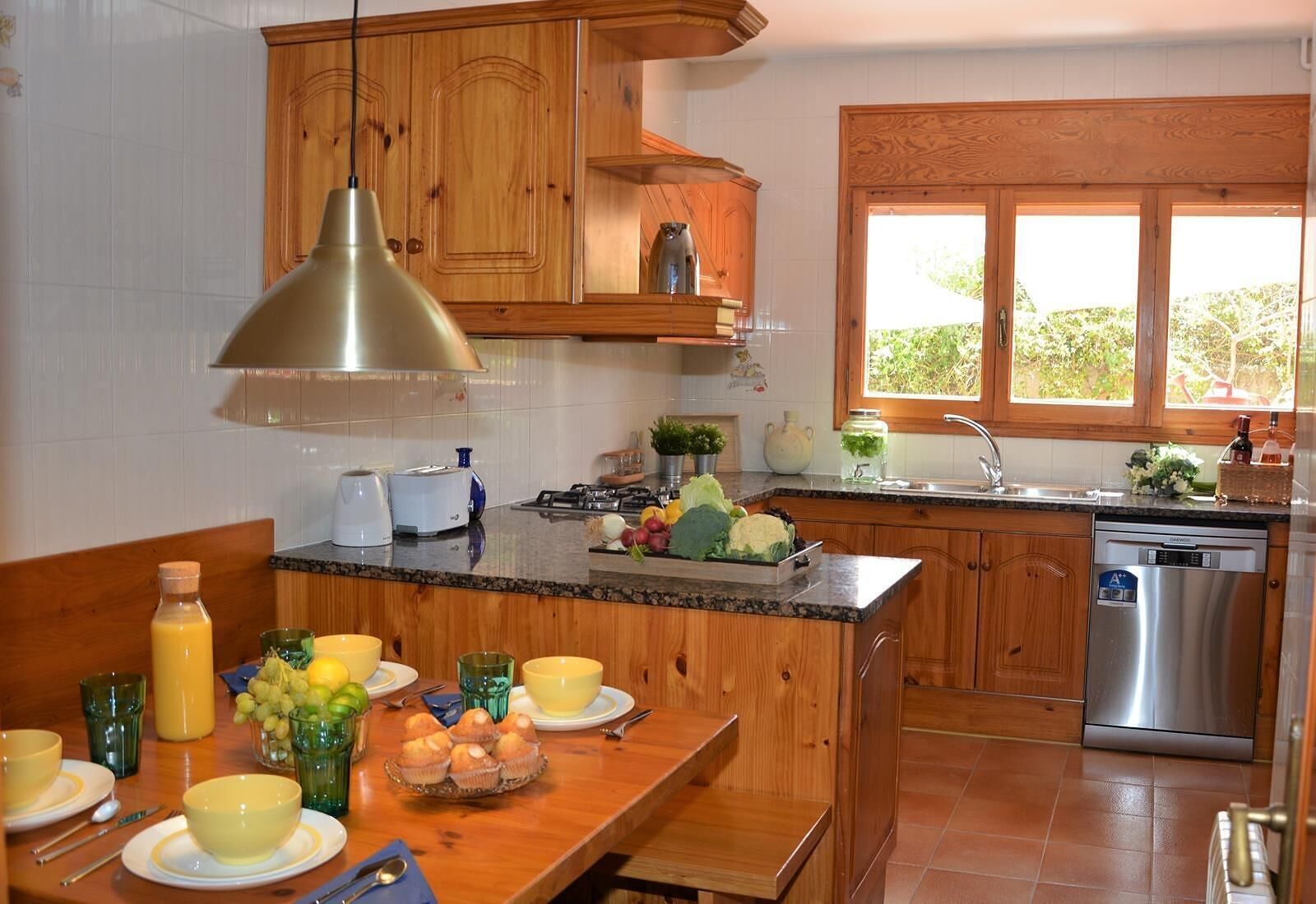 The kitchen is fully equipped with all kinds of utensils so that, if you wish, you can cook for your family. The comfortable living room with space for the whole group and TV, has direct access to the garden and the pool.