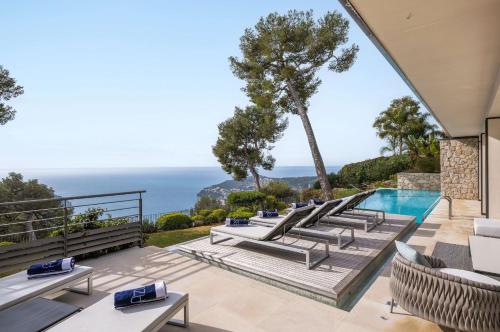4.4 miles from MAMAC in Villefranche-sur-Mer, Villa The View provides accommodations with access to a steam room and open-air bath. This property offers a rooftop pool, free Wifi, and free private parking. Guests also enjoy access to the sauna and hot tub, as well as the hammam and spa facilities. Leading onto a balcony with pool views, the spacious air-conditioned villa consists of 6 bedrooms. Providing a terrace with sea views, this villa also provides guests with a flat-screen TV, a well-equipped kitchen with a dishwasher, an oven, and a microwave, as well as 6 bathrooms with a hot tub and bathrobes. There's also a seating area and a fireplace. Guests at the villa can enjoy a continental breakfast. There is an on-site bar. Guests can relax in the garden at the property. Castle Hill of Nice is 5 miles from Villa The View, while Avenue Jean Medecin is 5.2 miles away.