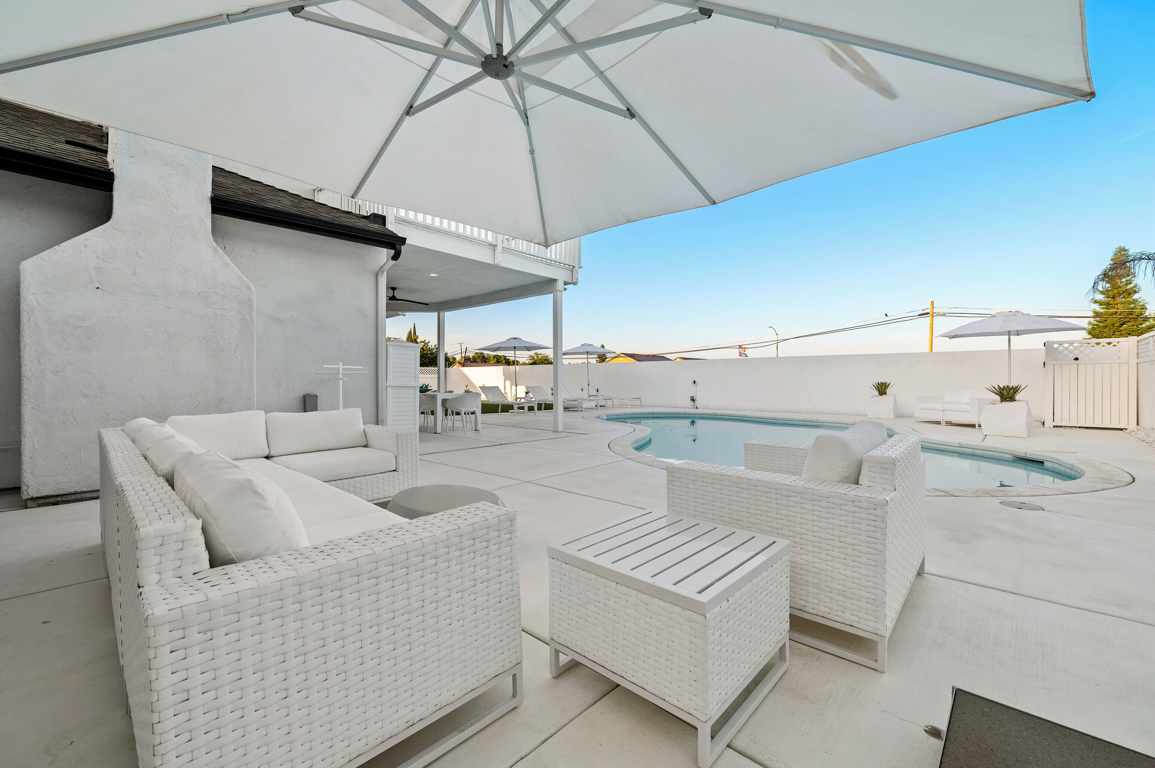 The spacious GATED pool and patio is perfect for swimming laps or simply soaking in the sun and provides plenty of room for the whole family to enjoy together comfortably. It features a 3-foot springboard and is surrounded by shade from two pergolas. You can access the pool directly from the Master Suite or the kitchen and living areas. Please note the pool is NOT heated.