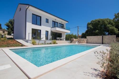 The Villa "Vali 1" is a beautifully constructed two-story property built in 2018. It offers a private and tranquil setting, situated just 300 meters from the center of Novi Vinodolski, Croatia. The villa enjoys an elevated, sunny position, only 60 meters from the sea and beach. With a private fenced property of 520 square meters, it provides ample space for relaxation and enjoyment. Guests can indulge in a refreshing dip in the angular swimming pool (5 x 4 meters, 23 square meters, depth of 140 cm), which is equipped with a salt-electrolysis pool-cleaning system and is available seasonally from May 1st to October 15th. The villa also features a terrace spanning 50 square meters, perfect for alfresco dining or lounging, and a convenient outdoor shower. Additionally, it offers amenities such as internet access, a washing machine, and a barbecue area for a delightful vacation rental experience.