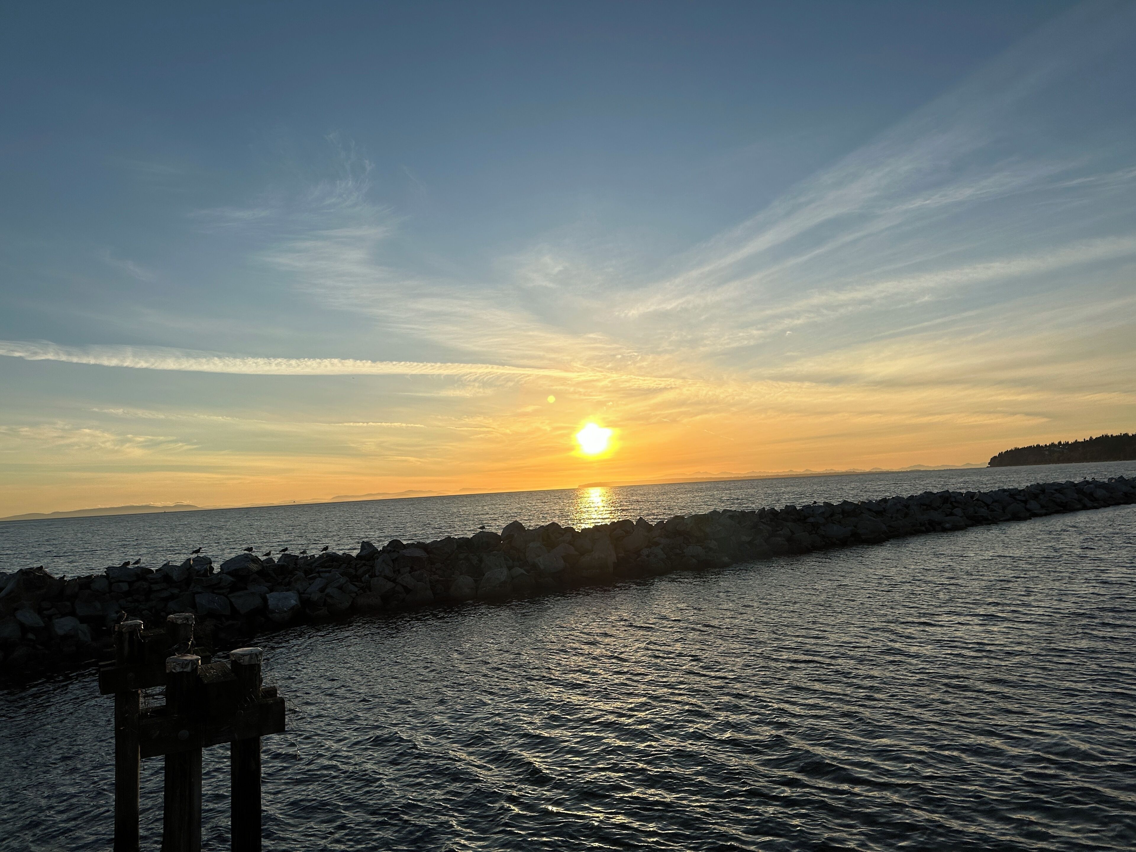 Newly renovated studio suite offers stunning panoramic ocean views of White Rock Pier, the Promenade, and Southern Gulf Islands. Take in the sunsets and ever-changing tides directly from inside the suite or from the large, sheltered patio facing the sea. The sound of crashing waves and of the sea birds is audible from both. Close beach access ideal for kayakers, kite surfers, and paddle boarders or for taking waterfront walks. Restaurants are steps away. Amenities include a full kitchen—oven, fridge, microwave, coffee maker, toaster, popcorn machine; washer, dryer, AC, and Samsung TV (Internet and Netflix access provided). A queen-size bed and pull-out single bed comfortably accommodate 1-3 guests.