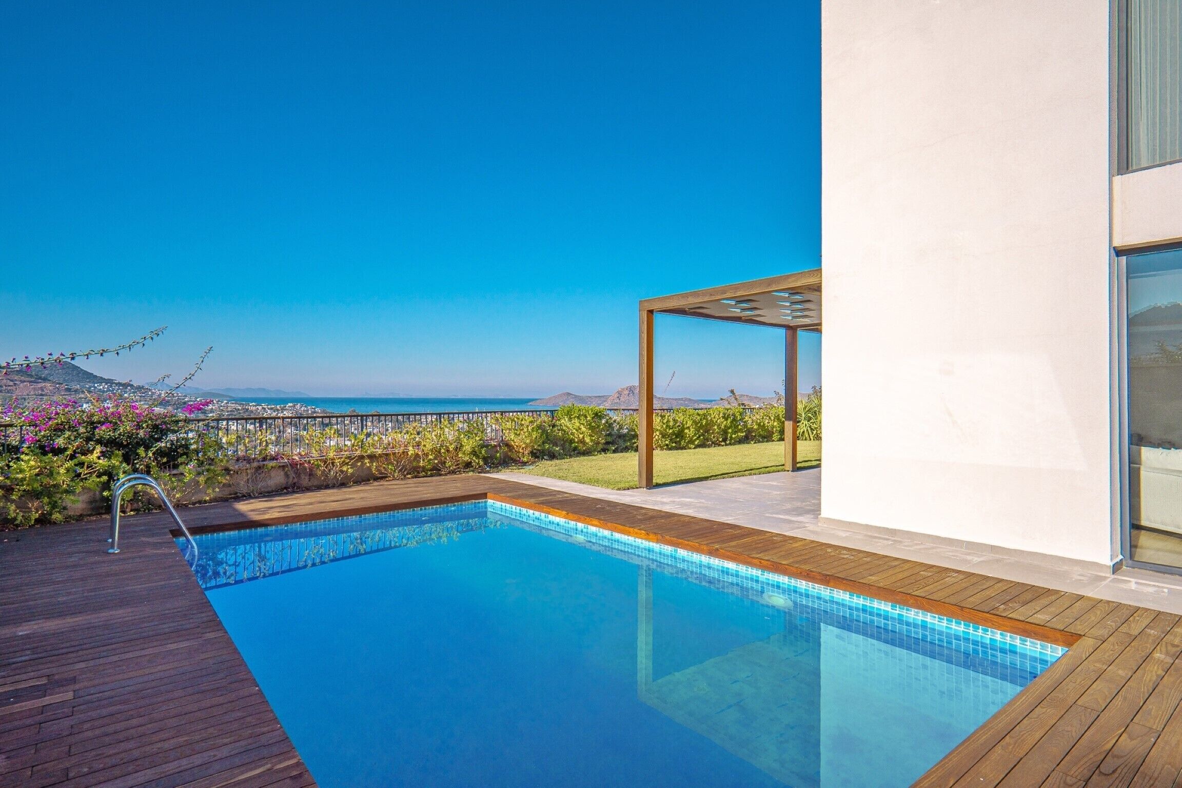 Luxury self catering 3 bedroom VIP holiday villa with communal swimming pool for rent in Yalikavak, Bodrum / Turkey