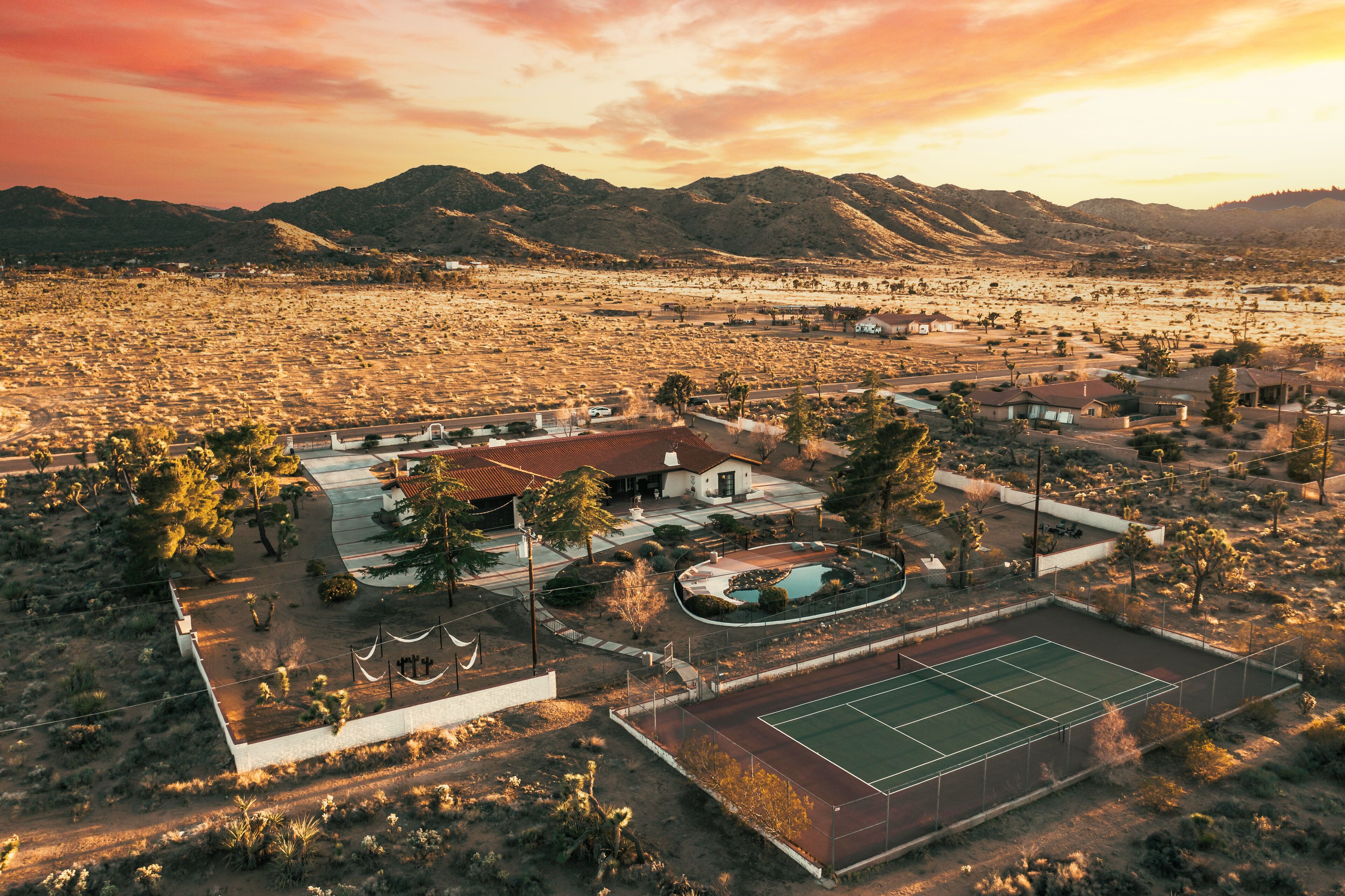 Desert Sunsets - where luxurious desert living meets modern elegance with breathtaking, unobstructed views. This is your ideal sanctuary for relaxation or adventure in the Yucca Valley/Joshua Tree area.