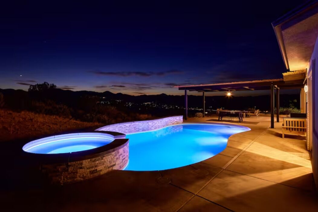 Experience Ultimate Relaxation: Complimentary spa heat is included with your booking. And we’re offering an exclusive 50% discount on pool heat (normally $150 per day, now $75 per day). Picture yourself unwinding in the warm 86°F pool waters during the day with breathtaking desert mountain views. And as the sun sets, indulge in stargazing from the cozy 104°F spa.